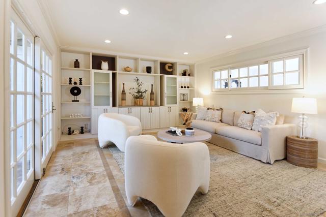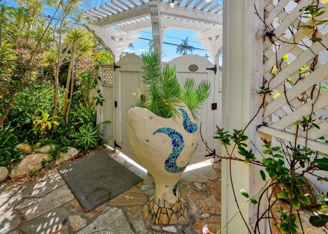 A short stroll to Wind N’ Sea beach, we are delighted to offer you a four bedroom, two and a half bath two story Euro inspired beach house of approximately 2560 square feet plus a one bedroom, one bath 740 square foot ocean view ADU or guest house. The main house, designed by architect Claude Anthony Morengo has travertine floors, beautiful stone counters, French doors, custom windows and artisan touches throughout. There is a separate Zen room complete with stone mosaics and custom stained glass windows. The primary suite is on the main level with a spacious bath, walk in closet and hand painted murals and an oversized jetted spa tub. The cheerful country kitchen has a massive skylight, LG stainless steel appliances, a Fulgor six burner gas stove, and a large area for dining. The family room has built in cabinetry and bookshelves. Built in 2018 and designed by Jeanne Liem, the guest house has engineered wood floors, a breakfast bar, a gas fireplace in the living room and a bedroom and seating area that occupy the entire second floor. Outside is a loggia with space for a big dining table, BBQ and spa . The foliage is lush with a canopy of tress that will make you feel like you are on a Hollywood movie set. Come see this one of a kind property. Ideal for a primary residence or vacation home.