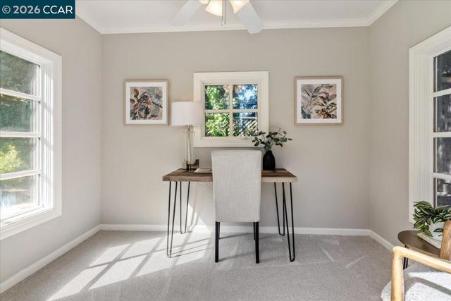 Beautifully updated and perfectly located near the Iron Horse Trail and Osage Park. The ultimate blend of farmhouse with modern finishes. New Roof and Owned Solar keeps your electric bill near zero the entire year. More than 2300 sq. ft, an open floor plan with the kitchen and family room overlooking the pancake flat, private, nicely landscaped backyard. Separate living and family rooms and a formal dining room. The luxury primary suite offers dual sinks, a spacious shower and plenty of closet space. Three other secondary bedrooms share a hall bath with a tub shower. There's even a loft area for the kids to have their own play space or a place to do their homework. A nicely organized laundry room that includes a large counter and lots of cabinets. There is a finished office in the backyard with windows, lighting and outlets. A great entertaining yard with a large patio and lots of space to play in the grass or relax in the hot tub. Side yard access with room to store a boat or RV. Blocks to Charlotte Wood middle school, John Baldwin elementary and the beautiful Danville Station HOA that includes a pool, playground, tennis courts and greenbelts, all for $425/quarter.