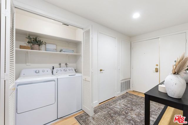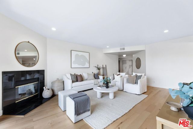 Quietly positioned within a desirable Beverly Hills adjacent neighborhood, 9880 Vidor Drive Unit 104 is a second floor light filled corner residence defined by scale, privacy, and expansive sightlines. Four private terraces extend from the home, capturing Beverly Hill's skyline and mountain views while creating an effortless indoor/outdoor flow throughout the living spaces. Although designated as Unit 104, the residence is situated on the second level, raised above the street to enhance privacy, security, and an elevated living experience. Upon entry, a gracious foyer establishes a true sense of arrival before opening into the main living areas. The open concept living and dining space unfolds with ease, anchored by recently updated flooring and framed by expansive windows and glass doors that flood the home with natural light and connect seamlessly to the surrounding terraces. The three bedroom layout is thoughtfully designed, with each bedroom positioned at a separate corner of the residence, creating a heightened sense of privacy throughout. Additional highlights include air conditioning, in-unit laundry and two side-by-side garage parking spaces, a rare and valuable convenience in this location. Intelligently designed and positioned as a corner unit, 9880 Vidor Drive Unit 104 delivers a refined living experience marked by abundant natural light, elevated views, and privacy, just moments from Beverly Hills and Century City.