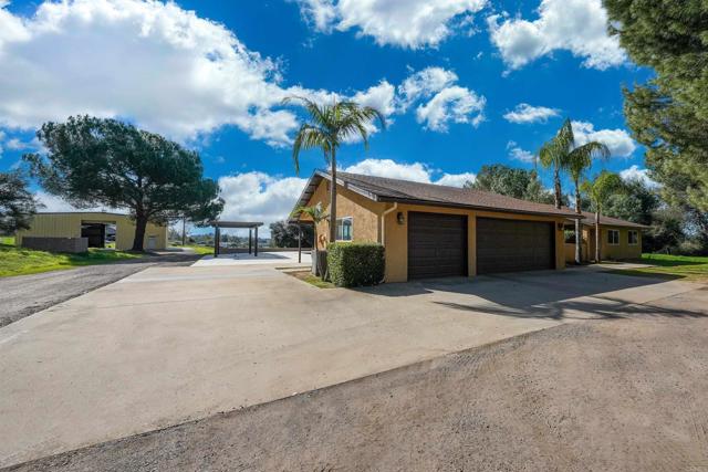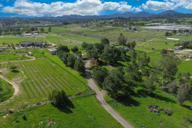 ACRES! Yes, 5.84 acres of gated, fully fenced and usable land located at the end of the road. This parcel is enhanced by both city and private well water for irrgation, unique rock out croppings, 20'X40' ingound gunite pool with Baja shelf and slide, above ground spa, Gazebo with capped utilities for your future outdoor kitchen. Need a workshop? Try this 50'X60' metal/steel building with 20 florescent lights, 2 14'+ roll up doors, skylights and paid solar. The property is further enhanced by RV parking and hookups, 1934 sq. ft. home that has been totally remodeled and features counrtyard entry to spacious living/dining rooms. Note the pellet stove insert with see through brick fireplace to family/game room with slider to side covered patio featuring panoramic views of the mountains and pastoral valley. The remodeled kitchen has a desiable breaskfast nook, granite counters, custom wood cabinets, pantry, wine refrigerator and upgraded appliances. You will so appreciate, the master suite with HUGE walk-in closet with custom closet organizers and attractive bath with granite counters, dual sinks, roomy shower with light enhanced solar tubes. The additional two bedrooms share the second remodeled bath with tiled to ceiling combo shower/tub. The attached 3 car finished garage has an installed water filtration system, newer 2018 Rheem HVAC system, components for your future generator and paid solar system. This property is TRULY amazing and provides an abundance of privacy enhanced by mature Pines and Oaks!