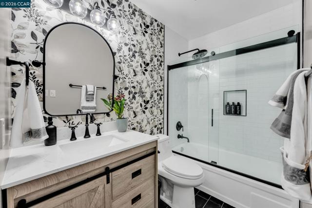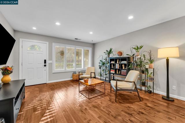 Welcome to this beautifully updated 3-bed, 2-bath townhouse at 2724 Bollinger Canyon Rd, offering 1,158 sq ft of thoughtfully designed living space. This rare single-level, end-unit residence provides exceptional privacy and a highly functional layout—an uncommon opportunity within the community. The bright interior features recessed lighting and a stylish blend of hardwood, ceramic tile, and carpet flooring. The updated kitchen boasts quartz counters, ample cabinetry, and a breakfast bar, seamlessly opening to the dining area for effortless everyday living and entertaining. The primary bedroom includes a renovated ensuite with a walk-in shower, while the secondary bath features a renovated shower-over-tub. A true standout, the 3-bed, 2-bath configuration is rarely available in the community. Dual-pane windows throughout enhance natural light and energy efficiency. Additional highlights include an in-unit washer and dryer, forced-air heating and cooling, assigned parking, a garage, and abundant street parking for guests. Enjoy a private backyard, inviting community outdoor spaces, and access to the community pool, all conveniently located near shopping, dining, and commuter routes. Single-level, three-bedroom end units are seldom available—don’t miss this exceptional opportunity.