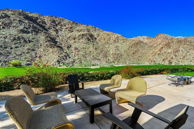 Located in Los Estados, a highly sought-after community adjacent to the renowned La Quinta Resort & Club, 76970 Avenida Fernando occupies one of the premier locations within the community, positioned on the 17th fairway of the Mountain Course with sweeping, panoramic mountain views and an exceptional golf-course setting. The property is further distinguished by an oversized lot relative to surrounding homes, offering enhanced space, openness, and privacy.The residence has been completely remodeled with a cohesive, design-forward approach emphasizing craftsmanship, texture, and architectural continuity throughout. The centerpiece of the renovation is a fully reimagined kitchen featuring all-new custom cabinetry, quartz countertops, and Bosch appliances, including a Bosch induction cooktop, delivering both refined aesthetics and high-level performance.Additional upgrades include fully remodeled bathrooms, new flooring throughout, and the extensive use of tongue-and-groove wall treatments, complemented by batten board detailing in select spaces, creating depth, warmth, and a tailored architectural finish. Every element of the renovation was thoughtfully selected to create a polished yet inviting living environment.The floor plan is oriented to maximize both livability and views, with interior spaces opening to dramatic fairway and mountain vistas often associated with multi-million-dollar properties. Expansive sightlines, abundant natural light, and seamless indoor-outdoor flow define the home's elevated desert lifestyle.Outdoor living areas benefit from the generous lot size, golf-course frontage, and commanding mountain backdrop--providing flexibility for entertaining, relaxation, or future outdoor enhancements. Los Estados offers a private, established setting while remaining moments from championship golf, resort amenities, dining, shopping, and the charm of Old Town La Quinta.Offering a premier Mountain Course location, exceptional lot size, and a complete architectural remodel, 76970 Avenida Fernando represents a rare opportunity in one of La Quinta's most desirable resort-adjacent communities.