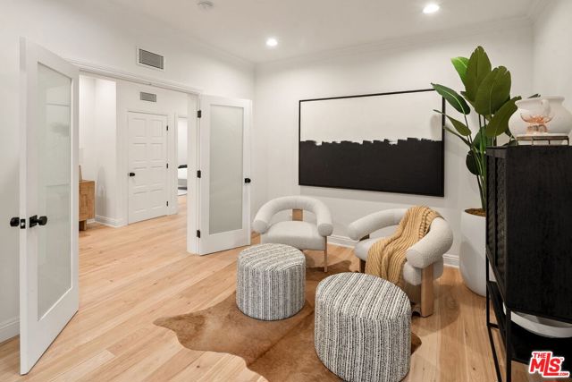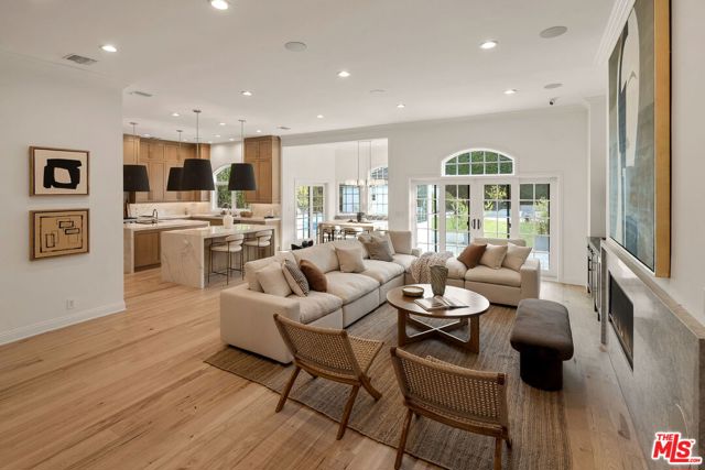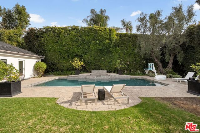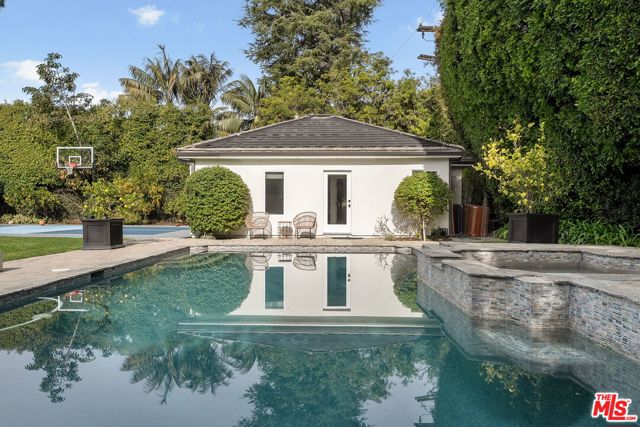 Located on one of Brentwood's most coveted streets, Homewood Road, this newly reimagined estate offers a sophisticated balance of timeless design and effortless California living. Thoughtfully renovated by the current owner, the residence spans approximately 6,800 square feet on an expansive, flat 18,359-square-foot lot.A grand double-door entry opens to a sun-filled foyer with soaring 23-foot ceilings, immediately establishing the home's sense of scale and light. The main level is designed for both refined entertaining and everyday comfort, featuring a formal dining room overlooking the gardens, a dedicated theater, and an expansive great room where a double-island chef's kitchen seamlessly connects to the family room and outdoor living spaces. The kitchen is appointed with custom wood cabinetry, marble countertops, professional-grade appliances, and a walk-in pantry, while a window-wrapped breakfast nook enjoys tranquil views of the pool and grounds. Two generously sized bedrooms and a full laundry room complete the main floor.The upper level hosts four en-suite bedrooms, each with walk-in closets, including a luxurious primary suite with a private sitting area, office, and dual walk-in closetsone currently configured as a fitness studio.Set behind lush landscaping, the resort-style backyard features a sparkling pool and spa, multiple outdoor lounging and dining areas, and a broad lawn ideal for recreation. Additional amenities include a private pickleball court and a fully permitted two-bedroom, one-bath guest house with its own laundry.Situated within the coveted Kenter Canyon Elementary School district and surrounded by Brentwood's finest estates, this exceptional property offers a rare combination of scale, privacy, and modern elegance in one of Los Angeles' most desirable neighborhoods.