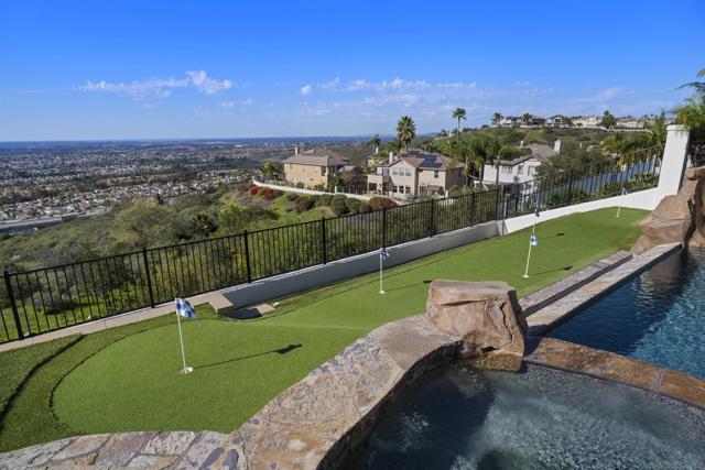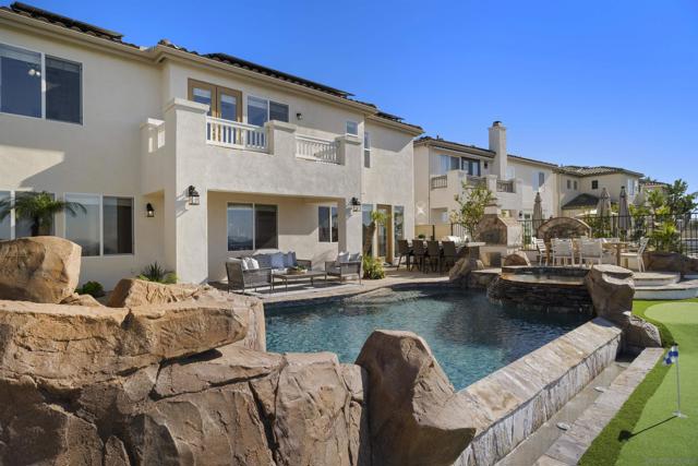 A rare find in Scripps Ranch—the kind of property that makes buyers stop scrolling and take notice. With unobstructed 180-degree panoramic ocean views, this home delivers true resort-style living with an exceptional backyard designed for both entertaining and everyday enjoyment. Fourth of July fireworks light up the skyline across San Diego, while the Blue Angels put on an unforgettable show during the Miramar Air Show—views and moments that never get old. Located in the highly desirable Terraza community, 11127 Breckenridge Drive is a thoughtfully designed Brookfield Homes Plan 3 offering 3,474 sq ft, 5 bedrooms, and 4 baths. The home has been meticulously renovated & feels like a brand-new build, featuring a fully updated gourmet kitchen with premium stone countertops, high-end stainless appliances, refined cabinetry, and luxury finishes throughout. The backyard is a true showstopper: a saltwater pool & spa with infinity edges, water slide and grotto, built-in fire pit, outdoor kitchen with custom wood-fired pizza oven, BBQ, wet bar, built-in seating, & a private putting green with sand trap—your own private resort. Adding exceptional long-term value, the home includes a fully owned solar system on NEM 1, grandfathered through 2034, providing true net-metering & significant annual electric savings. Perfectly positioned as far west as you can go in 92131, Scripps Ranch blends resort-style living with outdoor adventure—offering miles of scenic hiking & biking trails, Lake Miramar walks, farmers markets, and great local dining just minutes away.