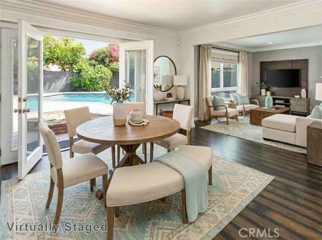 Welcome to this beautifully UPDATED West Hills entertainer’s home, where thoughtful design meets everyday comfort. Nestled on a quiet, tree-lined street, this home features a sparkling in-ground POOL, SOLAR PANELS, and BATTERY BACK-UP, along with a versatile BONUS ROOM that could easily serve as a FIFTH BEDROOM. The 7,769 sq. ft. lot welcomes you with a front lawn, colorful flowerbeds, raised brick planters, and shade and fruit trees that enhance the inviting covered entry. Inside, the bright, open floor plan flows effortlessly, offering approximately 1,844 sq. ft. of living space. The family room is filled with natural light from large bay windows, while the custom tiled fireplace adds warmth and character. The chef’s kitchen is well equipped for everyday living and entertaining, featuring ceiling-height cabinetry, gleaming countertops, a breakfast bar, and stainless steel appliances, including a Frigidaire® self-cleaning five-burner gas range with Arietta® ventilation hood and a Frigidaire® dishwasher. Adjoining the kitchen, the dining room showcases crown molding and French doors that open to the outdoors, creating a comfortable indoor-outdoor connection. The home offers four bedrooms and two and a half bathrooms, including an oversized primary suite with abundant natural light, dual closets, and a private en suite featuring a dressing and vanity area, along with a glass-enclosed step-in shower set apart for privacy. Downstairs, the bonus room with backyard access is ideal for an office, hobby space, or additional bedroom. An indoor laundry room with checkerboard tile helps keep daily life organized. Step outside to a private backyard retreat complete with a sparkling in-ground pool, open patio, fenced grassy area, vibrant flowerbeds, and an oversized storage shed, well suited for entertaining or quiet evenings outdoors. With a two-car garage, central air and heat, and a desirable West Hills location, this home blends modern convenience with comfortable living in an established neighborhood.