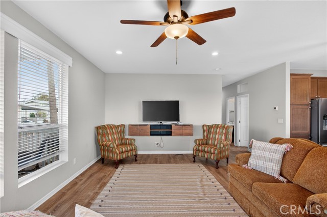 Centrally Located in a very nice 55 plus community in the heart of Lake Forest where the second person can be 18 years are older to live here. This beautiful home boast 3 generous size bedrooms and open floor plan. The kitchen is open with a beautiful island and so much cabinet storage. The Master bedroom is large with a spacious bathroom and large walk-in closet! This highly upgraded 2019 model home looks like it was never lived in. This home offer huge ceilings and custom cabinets and of course beautiful flooring throughout with lots of sun filled windows. Large Corner lot! Ceiling fans, recessed lighting. Extra-large expanded carport. A great storage unit and outdoor space. The community amenities include a large, heated swimming pool, large Spa, pool tables, clubhouse and many social events to enjoy! Don't miss this opportunity to live in such a great community!