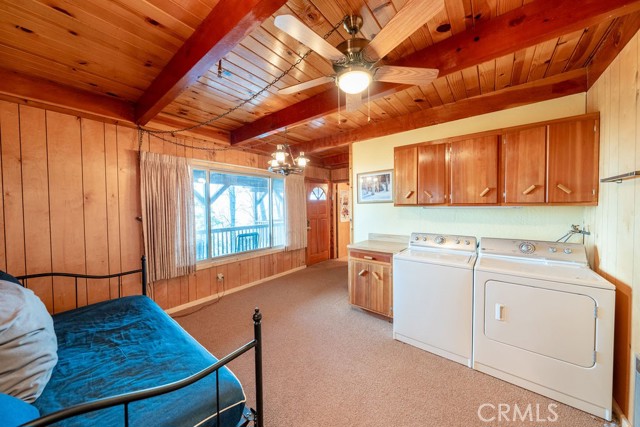 Extraordinary mountain retreat with breathtaking views, just minutes from Green Valley Lake. This thoughtfully designed home offers a flexible floor plan ideal for multigenerational living or rental use. Built with fire-resistant concrete siding and featuring interior sprinkler system, the property offers added peace of mind in a mountain setting. The all-electric home is well insulated for year-round comfort, with no gas or propane to maintain. The kitchen is a true standout with a commercial pizza oven, perfect for entertaining and creating a warm gathering space. Surrounded by thousands of acres of forest and nearby trail access, this property blends rustic cabin charm with modern, energy-efficient sensibilities. Centrally located between Lake Arrowhead and Big Bear, enjoy easy access to skiing, snow play, boating, hiking, dining, and mountain events year-round. Voluntary HOA offers reduced lake access and fishing privileges.