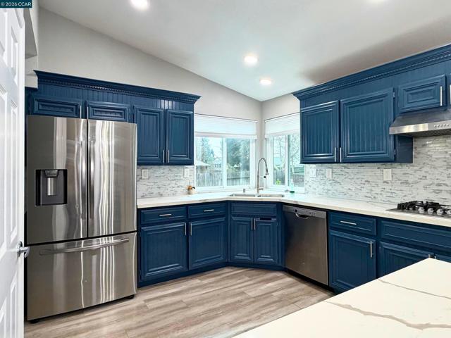 This captivating single-family home in Elk Grove's sought-after Laguna neighborhood sits on a peaceful cul-de-sac, blending fresh modern upgrades with everyday practicality. Enjoy a bright, open layout flooded with natural light from new dual-pane windows and soaring ceilings. The chef's kitchen dazzles with crisp white quartz counters, premium stainless appliances, a deep single-bowl sink, and energy-efficient LED lighting. Upstairs, a generous primary suite joins additional bedrooms served by spa-like baths with contemporary fixtures and frameless glass showers. Downstairs features a main-level bedroom and full bath adding perfect flexibility for guests, family, or a home office. Outside, relax in a private yard and utilize the oversized three-car garage. In a family-friendly community near top schools, parks, shopping, dining, and easy freeway access, this turnkey gem offers style, comfort, and prime location.