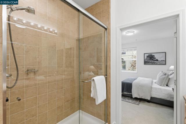 Exceptional single-level condo in the highly sought-after Terraces at Dublin Ranch, offering effortless living with elevator access directly from the secured parking garage. This beautifully maintained home is in excellent condition and features a light-filled open floor plan. The spacious living and dining areas open to a private balcony overlooking the serene interior courtyard—perfect for morning coffee or evening relaxation. The well-appointed kitchen features granite countertops, stainless steel appliances, ample cabinetry, and a breakfast bar ideal for entertaining. The primary suite offers a peaceful retreat with a walk-in closet and en-suite bath featuring dual vanities and a walk-in shower. Two additional bedrooms provide flexibility for guests or a home office. Additional highlights include in-unit laundry, central air conditioning, recessed lighting, and a cozy gas fireplace. Enjoy resort-style amenities including gated entry, pool and spa, fitness center, clubhouse, theater, and landscaped courtyards. Ideally located within walking distance of Emerald High School and close to shopping, parks, BART, major freeways, and top-rated Dublin schools.