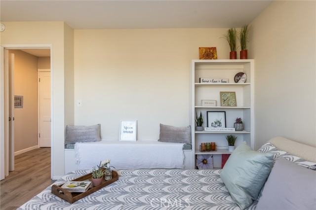 Welcome home to this rare and beautifully remodeled 2-bedroom, 1-bath condo in the desirable Lomita Pines neighborhood, adjacent to Rolling Hills Estates. This top-floor unit is ideally located near the front of the building with only one shared wall, offering added privacy and an extra window that fills the home with natural light. The bright and airy interior features an updated kitchen with soft-close cabinetry, stainless steel appliances, granite countertops, composite sink, and a breakfast bar for additional seating. A cozy dining area sits just off the kitchen, while the expansive living room provides ample space for both a living area and home office. Both bedrooms are spacious and versatile, and recent upgrades include new flooring, dual-pane windows, and updated kitchen and bathroom finishes—making this home truly move-in ready. Convenience continues with two side-by-side parking spaces and a private storage area located directly below the unit. The community offers a pool and spa, BBQ area, recreation room, community laundry, and utilities including water, gas, and trash. Ideally situated near shopping, dining, trails, and local attractions, this home offers an excellent opportunity for someone seeking comfort, value, and location.
