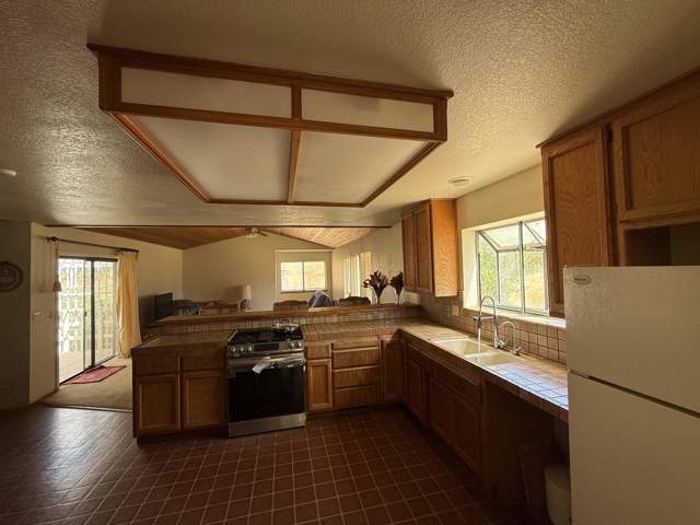 Spacious single-story home situated on approximately 6.89 acres of usable land. The property features a functional and well-designed floor plan with a large primary bedroom. Family room flows seamlessly into the open kitchen with breakfast bar, creating an inviting space for daily living and entertaining. The main house, guest house, and oversized detached garage have all been upgraded with 200-amp electrical panels. Main residence is topped with a durable clay tile roof. Approximately 1,800 sq ft detached garage offers excellent flexibility for storage, workshop, or multiple uses. Automatic security gate at the front yard provides added privacy. Ideal for buyers seeking space, comfort, and country living with convenient access to town. Buyer to verify all information.