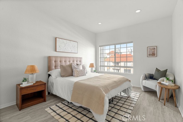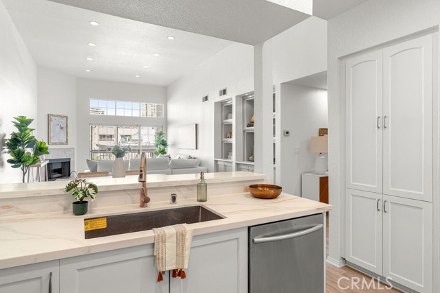 Beautiful front-facing residence on a quiet, tree-lined street north of Santa Monica Boulevard in the heart of Westwood. Filled with natural light and enhanced by high ceilings, this well-designed home offers an open floor plan ideal for both everyday living and entertaining. The spacious living room features a fireplace and flows seamlessly into the dining area with built-in bar, opening to a private balcony with serene neighborhood views. The kitchen is thoughtfully appointed with ample cabinetry, quartz countertops, and stainless steel appliances. The generous primary suite includes a walk-in closet, balcony access, and a spacious ensuite bath with dual vanities, separate tub, and shower. A well-sized second bedroom and updated hall bath provide flexibility for guests, home office, or additional living space. In-unit laundry completes the home. The secure building offers controlled access, elevator, pool, spa, additional storage, and gated tandem parking. HOA dues include earthquake insurance. Ideally located moments from UCLA, Westwood Village, Century City, and Westfield shopping and dining.
