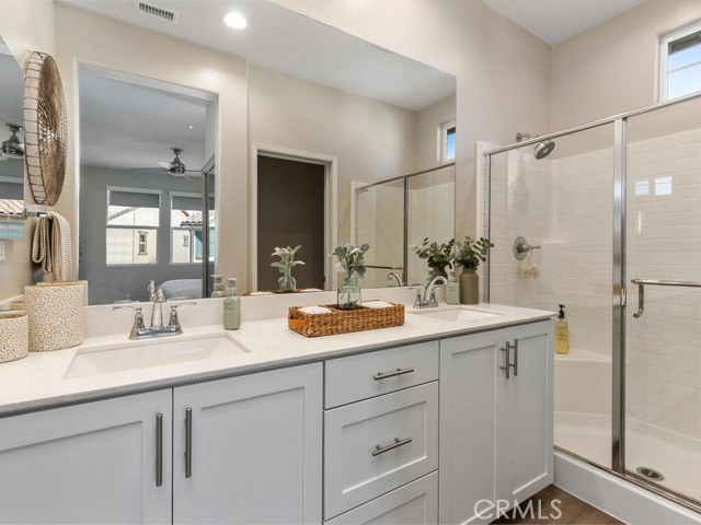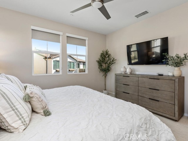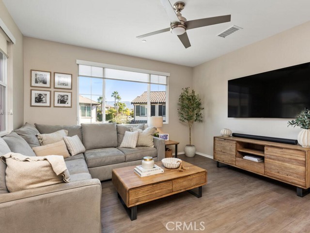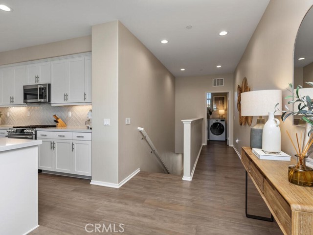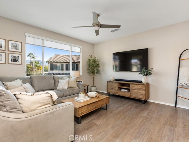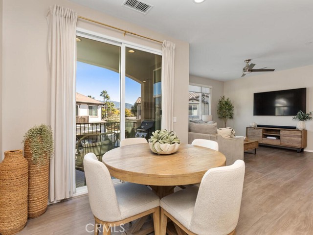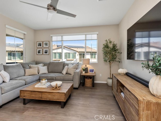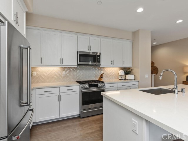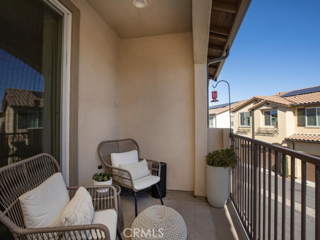 Immaculate and spacious, this upgraded condo is located in the highly sought-after gated community of Rancho Soleo. From the moment you enter, this home impresses with its pristine condition and thoughtful upgrades throughout. The entry hallway features Luxury Vinyl Plank flooring, convenient access to the garage, and a storage closet, with upgraded carpeted stairs leading to the main living level. As you approach the second level you'll immediately start falling in love with this exceptionally clean, beautifully decorated TURNKEY home that instantly feels welcoming. The stunning open-concept kitchen is a showstopper, featuring premium stainless steel appliances, quartz countertops, custom Herringbone layout subway tile backsplash, white shaker cabinetry with modern hardware, a single stainless steel sink, and under-cabinet lighting. The layout flows seamlessly into the dining and living areas, ideal for both everyday living and entertaining. Sliding doors from the dining area lead to a private balcony, offering effortless indoor-outdoor living—perfect for morning coffee, evening relaxation, or hosting guests. Down the hall, you’ll find a charming secondary bedroom accented with custom wainscoting that adds warmth and character. Across the hall is a stylish full bathroom featuring a quartz countertop, undermount sink, and white shaker cabinetry. At the end of the hall, you'll enter the spacious Primary Suite which offers a peaceful retreat, featuring abundant natural light, a generous closet and a private ensuite bath. Imagine unwinding in the inviting primary suite that was thoughtfully designed for relaxation and everyday comfort. The walkway along the staircase leads to a dedicated laundry room complete with a full wall of shelving for added storage. With numerous upgrades already completed, this move-in-ready home allows you to enjoy effortless living from day one. Conveniently located within the Temecula School District, close to the I-15 freeway, Pechanga Resort Casino, Journey Golf Course, city parks, and shopping. Welcome home—where comfort, style, and treasured memories come together.