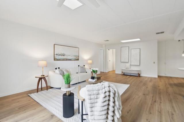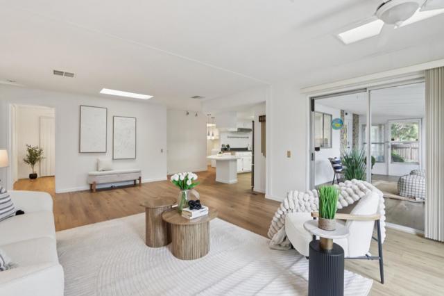 Situated in the highly sought-after Quail Hollow Community, this 1975 triple-wide offers 2 bedrooms, 2 bathrooms, and approximately 1,848 sq ft of living space on a desirable corner lot with convenient guest parking. Inside, new waterproof laminate flooring and fresh baseboards create a clean, updated feel throughout. The home features spacious, separate living and family rooms, perfect for relaxing or entertaining. The kitchen is equipped with stainless steel appliances- including microwave, stove, refrigerator, dishwasher, electric oven, and garbage disposal - plus a pantry, upgraded single-lever faucet, and modern lighting. The master suite includes two walk-in closets and a large ensuite bathroom with double sinks, a soaking tub, a separate shower, and ample cabinetry. Outside, enjoy a large corner-lot backyard with a beautiful garden and BBQ area. Additional highlights include central heating and AC, double-pane windows, a utility room with included dryer, a sunroom with a new ceiling and fresh paint, and a shed in the carport. Ideally located near shopping, dining, and major commute routes including Hwy 280, 880, and San Tomas Expressway, and just minutes from Santana Row, Valley Medical Center, The Pruneyard, and the Fruitdale VTA Light Rail Station.