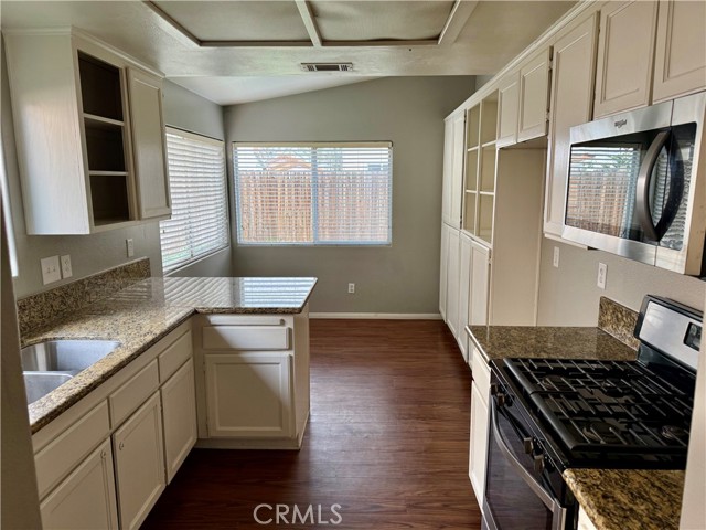 Turn Key ready to move in single story home on the west side of Hemet, close to schools and shopping. This has an open floor plan, family room has a tile fireplace, open dining room area, spacious kitchen that has granite counter tops and new stainless steel appliances, Small bar counter for dining. 3 bedrooms all have new carpet, master bedroom has sliding glass door to access the back yard, master bathroom has shower/tub and double vanity. 2nd bathroom has bathtub/shower. Backyard has patio slab. The house has NO HOA and Low Taxes. House is ready to move right in!!!!