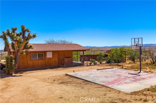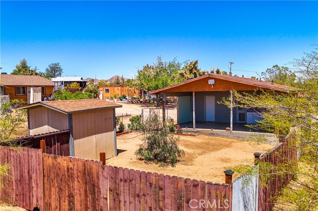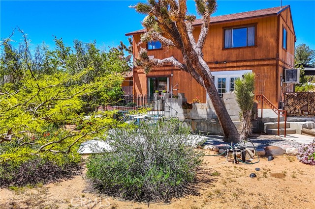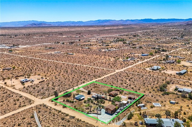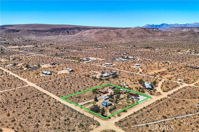 Don't miss out on this very special property. Very affordable multi home sale for investment, extended family or it might make for a great retreat center. Priced to sell and awaiting your personal touches. Sprawling across just over two well groomed acres boasting absolutely gorgeous grounds, tons of infrastructure and really beautiful panoramic views from it's hillside location. Three single family homes, as well as an additional large detached studio used by the properties caretaker, a detached smaller studio used as a gym, a detached garage and a detached laundry room. This property has a bit of everything. There is a genuine midcentury home ready to move into with one bedroom, full bath and enclosed porch. The midcentury home is on it's own utilities with separate meters from the rest of the homes for ease of creating a separate rental if desired. There is a clean studio apartment with exhibition kitchen and full bath, private fenced yard and great entertainers patio with partial outdoor kitchen amenities. The primary home built in 1989 is a 1500 plus square foot rare two story, three bedroom, two full bath fixer with great views from the second floor. The outdoor spaces on the home are amazing with many relaxing sitting areas, mature fruit trees including an orchard, cacti and Joshua Trees, enclosed garden beds, many sheds of various size, chicken coops, enclosed yards for livestock and desirable views of Goat Mountain and Pipes Canyon. The location is just over a 20 minute drive to the main entrance of the Joshua Tree National Park and also shorter distances to Giant Rock, The Integratron and Pioneertown. Come take a look and make this wondrous location yours and live life under the clear desert skies and beautiful dark star filled desert nights.