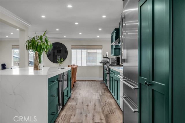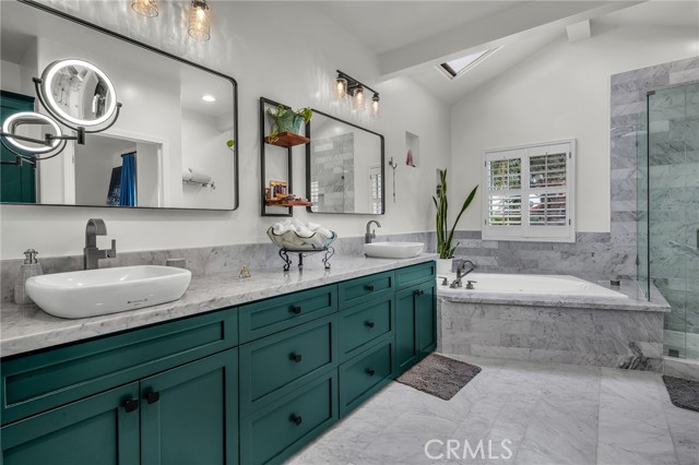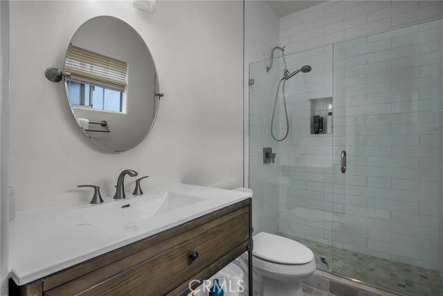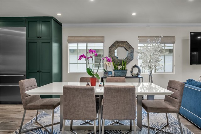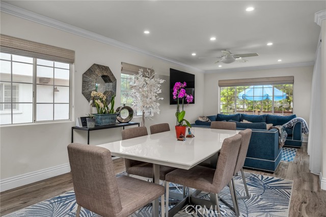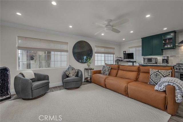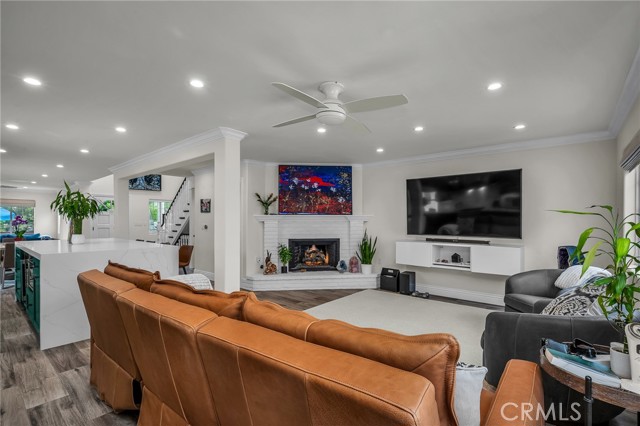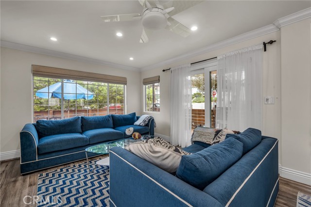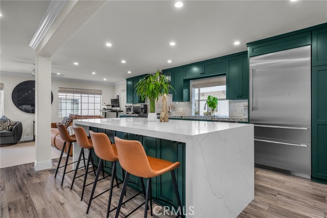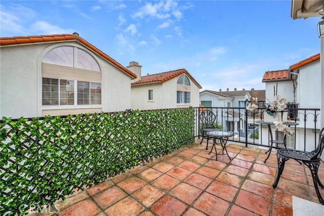 Located less than a 10-minute walk from the beach, this stunning freestanding townhome offers the best of South Redondo living. Lush, mature landscaping provides privacy for the charming Saltillo-tiled front patio, an ideal space for relaxing or entertaining. Inside, a bright double-height entry with skylight welcomes you into a light-filled home designed for comfort and style. The main level features an open-concept layout with easy-care tile flooring and windows on all sides, creating an airy coastal atmosphere. The front sitting area opens directly to the patio, while the spacious dining area flows seamlessly into the newly renovated kitchen. The kitchen is equipped with quartz countertops, Thermador appliances, a striking waterfall island with two beverage chillers, and seating for four—perfect for casual gatherings. A nearby half bath includes a bidet toilet. At the rear of the home, a generous living area is centered around a gas fireplace, ideal for cozy evenings. The lower level includes a bedroom with ceiling fan, dual closets, and a three-quarter bathroom. Upstairs, two additional suites each offer vaulted ceilings, dual closets, ceiling fans, and full bathrooms. The front suite overlooks mature trees, is set back for privacy, and features a sliding glass door and a bathroom with a glass-enclosed shower. A hallway laundry area leads to the luxurious primary suite, which opens to a private Saltillo-tiled balcony and features a spa-like bathroom with jacuzzi tub, glass shower with skylight, double-sink vanity, ample storage, and a walk-in closet. Additional highlights include central air conditioning, a two-car garage with epoxy floors, and a HALO whole-house water filtration system. Ideally located within walking distance to the beach, shops, restaurants, schools, the library, and all that makes the South Bay such a desirable place to call home.