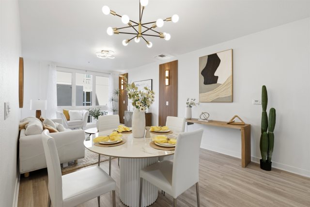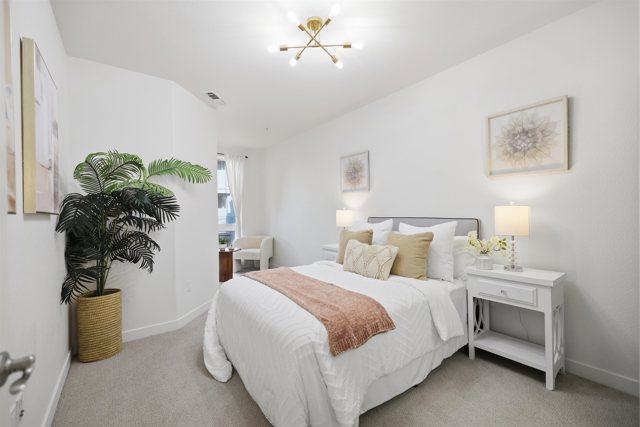 Prime location in Dublin, walking in BART Station! Discover luxury living in this beautifully updated top-floor condo. Offering 3 bedrooms, 2 bathrooms, 1,234 sq ft, this light-filled home sits in a secure, gated building steps from Dublin BART. The open living room and kitchen feature a modern wood-panel accent wall, new LED ceiling lights, and a stylish dining chandelier. LVP flooring runs throughout the main areas for a clean, contemporary look.The spacious primary suite includes a large walk-in closet, a private balcony with sweeping community views from the 5th floor, and a luxurious bathroom with dual vanities and a quartz backsplash in the shower. Additional features include an in-unit laundry room, two assigned parking spaces (#22) in the underground garage, and a private storage room.Community amenities include a well-equipped gym, beautifully maintained central parks, multiple water features, and inviting picnic areas. All of this in an unbeatable location—just a 5-minute walk to Dublin BART, and minutes to freeway 580/680, shopping, restaurants, grocery stores, cinemas and SF outlets. Don’t miss this rare top-floor home in the heart of Dublin!