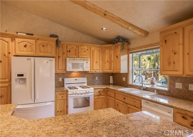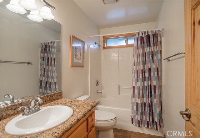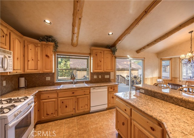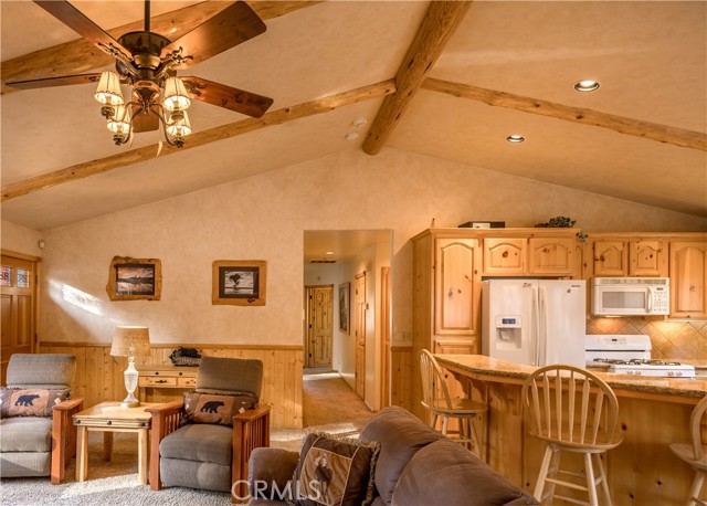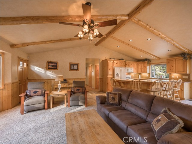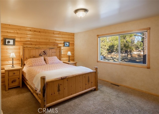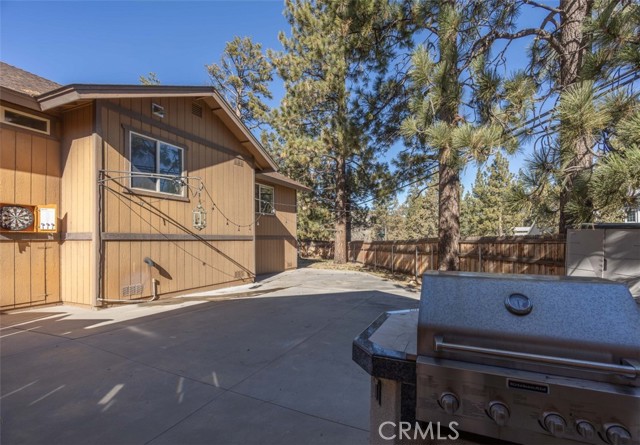 Beautiful single-story home with spacious open floor plan, lots of natural light, and situated on more than a 15,000 sq.ft corner, cul-de-sac lot. The warm and spacious great room has vaulted ceiling with log accents, floor to ceiling river rock fireplace, granite counters with island breakfast bar and large dining area. Other amenities include air conditioning, separate laundry room with built-in cabinetry, dual pane windows, primary suite with separate tub and walk-in shower and ample storage. Oversized, detached 2-car garage with high ceiling, extensive concrete driveway/parking with room for boat/RV, wood privacy fencing with double gate entry to yard/garage area and easy access to main road coming into Big Bear. Enhanced with composite decking on both front and back decks, fully-fenced back and side yards, an expansive patio area with built-in BBQ and plenty of space to entertain, this 3 bed, 2 bath home comes furnished and ready to enjoy. Wonderful opportunity for full or part time living.