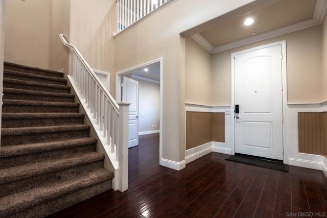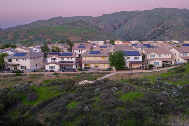 This stunning 4-bedroom, 3.5-bath Sycamore Creek residence in the heart of Temescal Valley blends elegant upgrades with rare, serene mountain views enjoyed from the dining room, the first-floor primary suite, and the private backyard. A dramatic two-story foyer with wainscoting opens to an expansive great room and a beautifully upgraded kitchen featuring custom wood cabinetry, motion-sensing interior lighting, a massive island with additional storage, custom backsplash, and a full walk-in pantry. The dining area is perfectly positioned to capture sweeping greenbelt and mountain vistas, creating a peaceful backdrop for everyday living. The first floor includes a versatile den/office or 5th bedroom option and a private primary suite with direct views of the surrounding hills. Upstairs, a spacious loft offers an ideal second living space, along with a second primary suite showcasing panoramic mountain scenery, an oversized custom spa shower, dual vanities, and two walk-in closets including a boutique-style built-in. Additional features include plantation shutters, crown molding, wood-look tile flooring, recessed lighting, roof mounted solar panels, and a 3-car garage with epoxy flooring and custom storage. Step outside to a professionally designed backyard with a built-in covered patio and uninterrupted views - no rear neighbors, just tranquil open space and rolling mountains. Residents enjoy resort-style amenities including pools, gym, clubhouse, sports park, playgrounds, and scenic trails, in addition to short 6-minute walks to Vons, CVS, Starbucks, restaurants and more. Please wear booties or remove shoes on carpet.