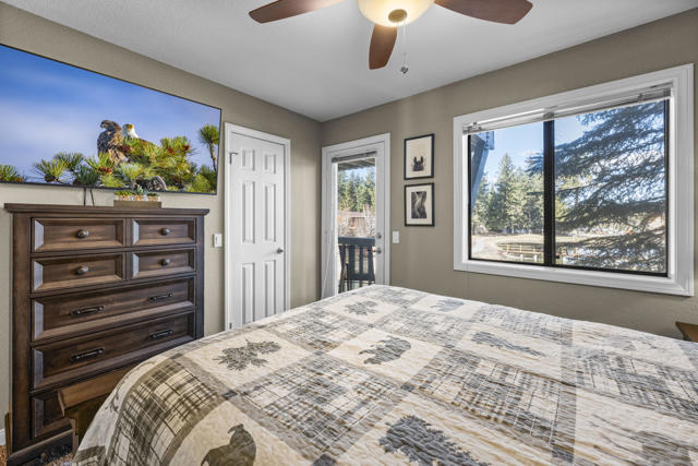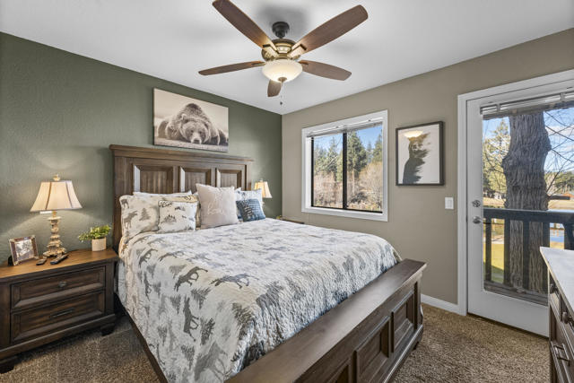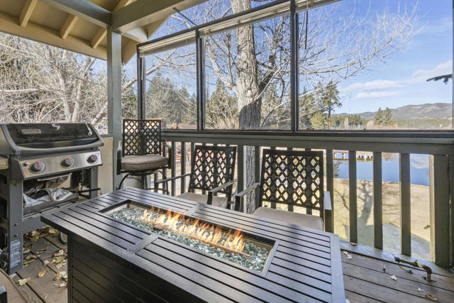 Stylishly updated townhome in Bear Meadows, ideally positioned overlooking the pond on the 8th hole of Bear Mountain Golf Course, with ski slope views visible from the kitchen and hallway windows. Recent upgrades include wood-grain tile flooring, custom lighting, a remodeled kitchen with granite countertops and stainless steel appliances, and updated bathrooms. The lower level offers a spacious entry with direct garage access, two en-suite bedrooms, and a convenient laundry room. Upstairs, the open great room is anchored by a dramatic floor-to-ceiling rock fireplace, half bath, and access to a private deck with plexiglass that frames the stunning views. The well-maintained Bear Meadows complex features community tennis courts, spa, and an updated clubhouse. Located at the base of the ski slopes in the heart of Moonridge, this property works equally well as a full-time residence or getaway and is currently licensed as a vacation rental. Offered beautifully furnished with high-quality decor and finishes, making it ready to enjoy today.