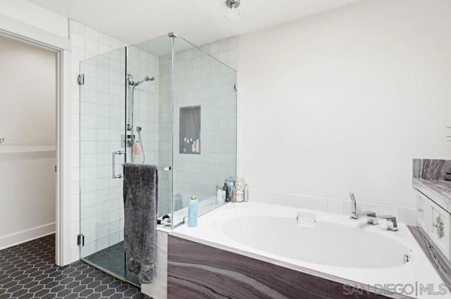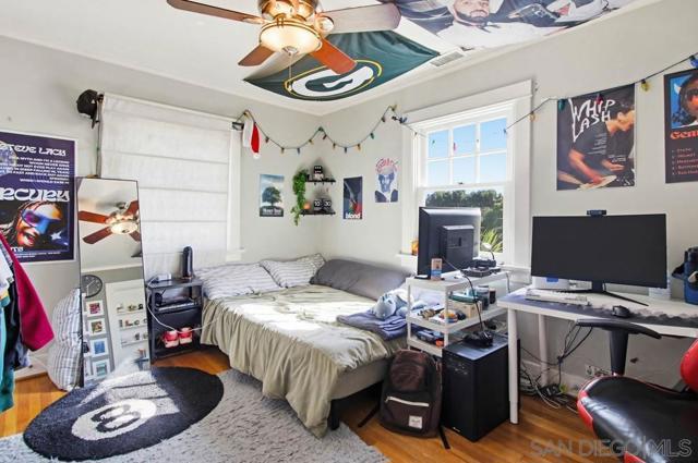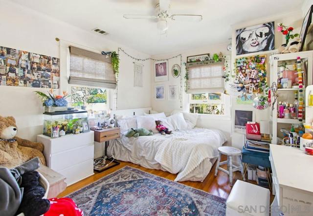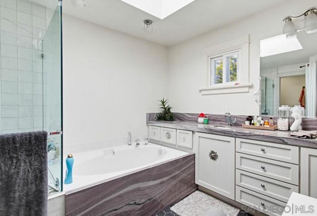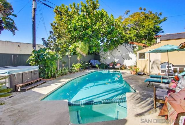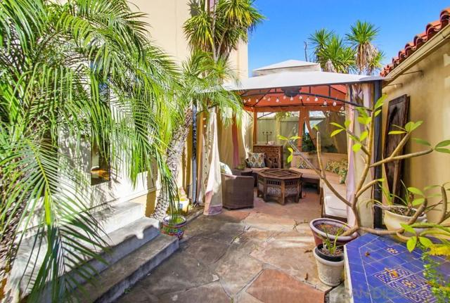 Welcome to this classic 1934 Spanish Revival home in the desirable Loma Portal neighborhood, rich in period charm and architectural character. This 2-story residence offers 4 bedrooms and 3.5 baths across 2,324 SF, blending timeless elegance with thoughtful modern upgrades. The entry opens to the original living room featuring coved ceilings, original moldings, and picture rails, flowing into the dining area and remodeled kitchen, and onward to the spacious family room addition with a cozy fireplace and custom cherry built-ins. Hardwood floors run through most of the home. The remodeled kitchen showcases abundant cabinetry, quartzite countertops, an imported Moroccan backsplash, and a cook’s peninsula. French doors from the dining area open to a Moroccan-inspired courtyard with a hand-tiled fountain, shaded cabana seating, ambient lighting, and lush landscaping—ideal for relaxing or entertaining. A Moroccan-inspired half bath completes the main level. The original garage has been converted to a detached flex room with built-ins, perfect for an art studio, home office, gym, or playroom. Upstairs are 4 bedrooms, 3 full baths, and a laundry closet. The primary bath is beautifully remodeled with a soaking tub, separate shower, hidden outlets, ambient lighting, and a voice-activated electronic system. The private backyard features mature landscaping, a pool and spa. Notable upgrades include newer fencing, windows, A/C, and owned solar. Situated on a 5,272 sq ft lot just steps to Liberty Station, with quick access to the airport, Downtown, Balboa Park, Petco Park, and beaches.