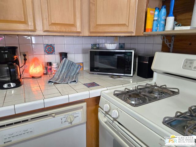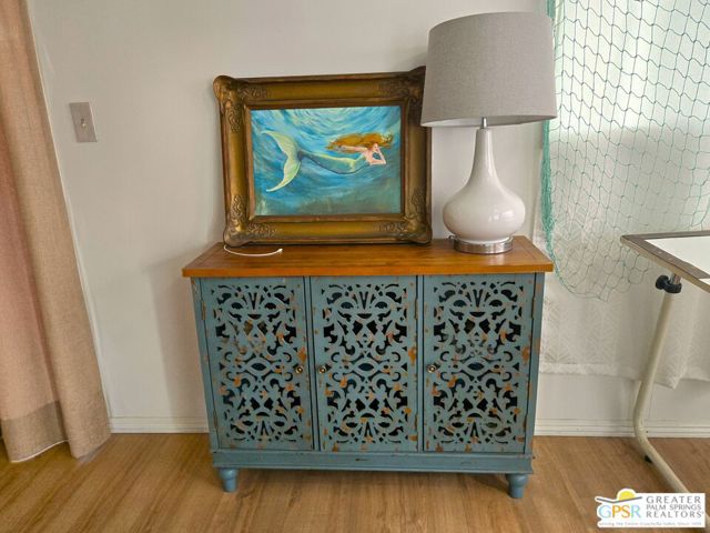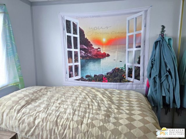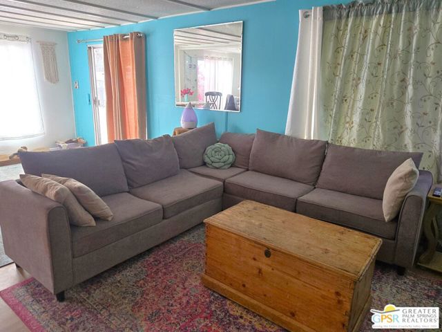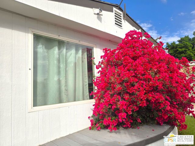 Welcome to *THE MERMAID HOUSE*, a Two Bedroom, Two Bath home with a Bonus Room added just off of the Master. This home has been decorated to bring the feel of the sea to you. You have just the right sized cozy space inside, and an immense outdoor rear area to stamp with your own style. Views of Mounts San Jacinto and San Gorgonio, and the Banning Pass await you outside. With easy access to nearby conveniences and attractions in the Coachella Valley, residents enjoy the accessibility of city living amenities while still being able to enjoy country tranquility. This 2 Bedroom, 2 Bath home that is just the right size at 854 SF is located in the North and Central section of Desert Crest Country Club, and is just down the way from both the Par-3 Golf Course and the Clubhouse with natural mineral spring water Pool & Spas. Whether you are looking for a permanent residence or a vacation home, this property offers the perfect combination of comfort, convenience, and charm. Parking is amazing with both a covered Carport and an additional parking Driveway. Coming inside the direct access Entry Doorway into the Living Room you enjoy an open living concept across the front of the home, with large Windows and the Slider Door Entry giving lots of natural lighting. The Kitchen has great space to prepare to entertain your family and guests, with a wraparound Breakfast Bar central area and tile countertops done right with custom tile inserts. Full cooking facilities are available in the Kitchen including the natural gas Range, Dishwasher and spacious Refrigerator completing what you need to entertain. You have great separation of public and personal spaces. The ensuite Master Bedroom & Bath has just what you need with the addition of a downstairs Bonus Room enlarging the space, and the second Bedroom and Bath are comfy and cozy. The Rear Yard is a blank slate ready for you to realize your dream of relaxing in privacy. Desert Crest Country Club is a wonderfully Active 55+ Community that provides all the activities you want. The Desert Crest Country Club community boasts a 9-hole par-3 golf course, inviting residents to enjoy free leisurely rounds amid the picturesque setting of pond and mature trees that boast views of Mounts San Jacinto and San Gorgonio and the iconic windmills of the Banning Pass. This oasis extends beyond the golf course. Residents here enjoy a multi-faceted Clubhouse featuring a healthy mineral water Pool and Spas, providing a serene escape and a hub for plenty of social connections. Indoor Shuffleboard and other activities are a welcome diversion here at the Clubhouse, with many interior facilities to keep you moving and fit. The onsite cafe caters to culinary cravings, the dog groomers attend to furry companions, and the real estate office ensures all needs are met with ease. These conveniences foster not just a residence but a sense of belonging within a home and community bound by shared experiences and vibrant camaraderie. This home represents a harmonious blend of comfort, style, and functionality, creating a delightfully private haven within the heart of Desert Crest Country Club. Whether indulging in a round of golf, luxuriating in the mineral water pool, playing shuffleboard, or simply savoring the serenity of the surroundings from your very private rear deck, this property offers a unique and fulfilling 55+ living experience, where every moment is the essence of a life well-lived!