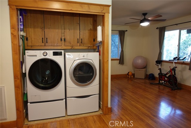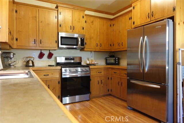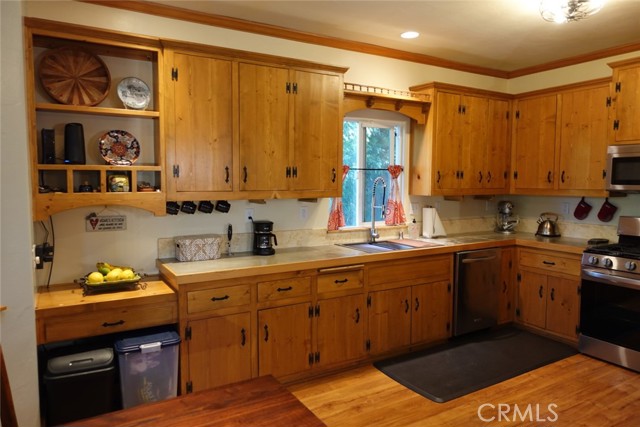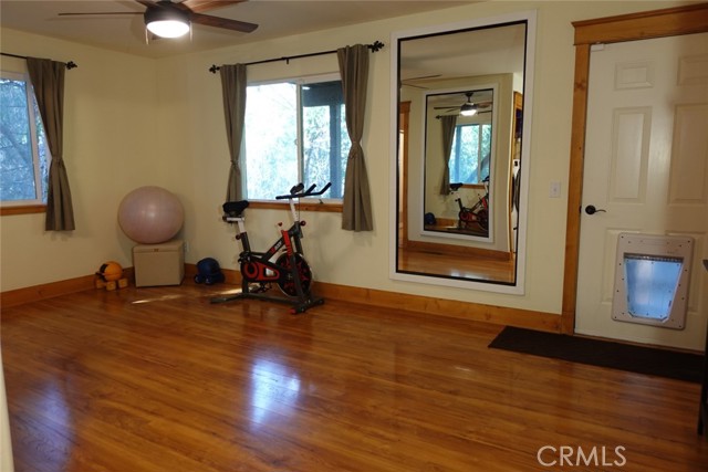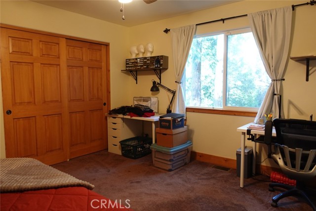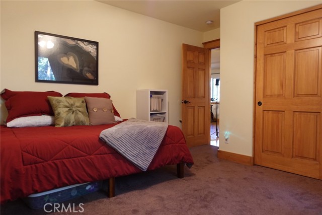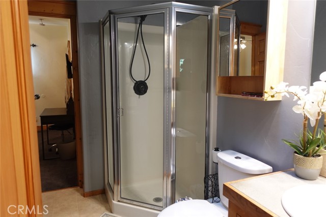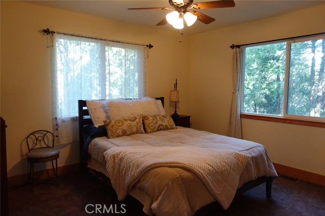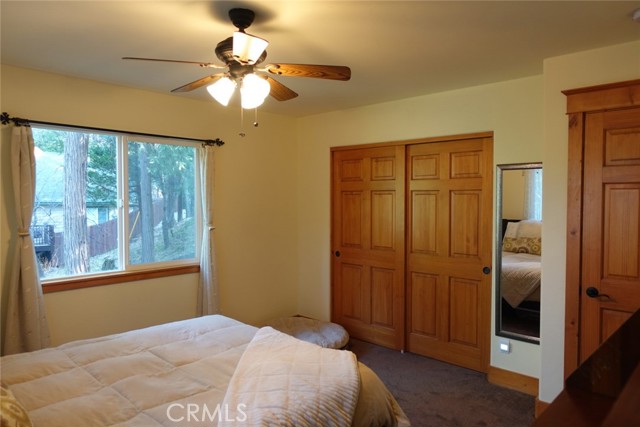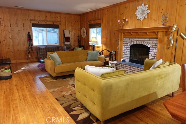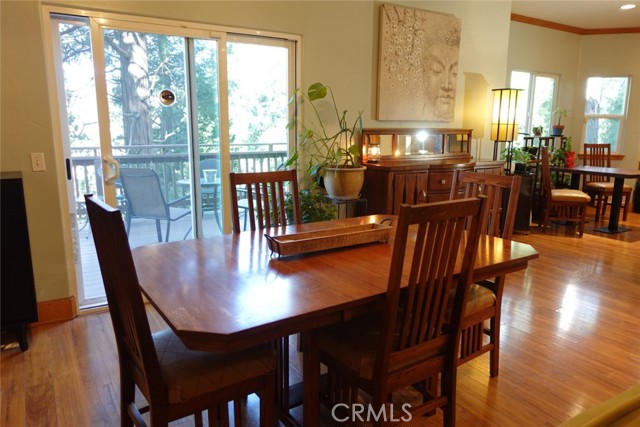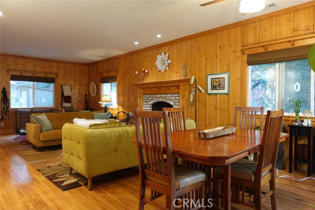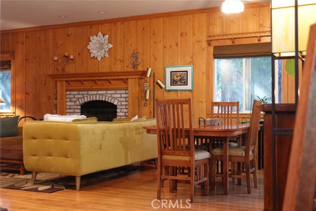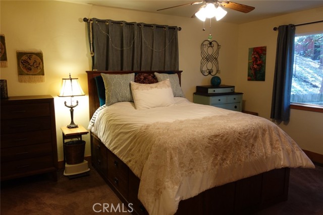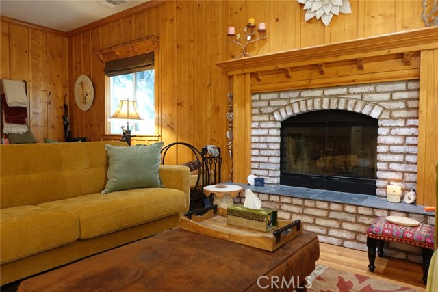 Welcome to this beautiful Crestline home offering the perfect blend of modern comfort and mountain charm. Built in 2008 and located just minutes from Lake Gregory, this 2,028 sqft. residence features a spacious and functional floor plan ideal for everyday living and entertaining. The main level offers a bright living room with fireplace, crown molding, and wood accent walls, a large kitchen with ample counter space, and a bedroom connected to a Jack-and-Jill bathroom with additional access from the dining area. Step outside to an expansive patio and a landscaped backyard with amazing views, creating a peaceful outdoor retreat. The lower level features a versatile secondary living area that can be utilized as a gym, game room, or office, along with three additional bedrooms, a Jack-and-Jill bathroom, and a convenient laundry closet. Additional highlights include a gated yard, private parking, and ample street parking. This turn-key property offers comfort, space, and the tranquility of mountain living.