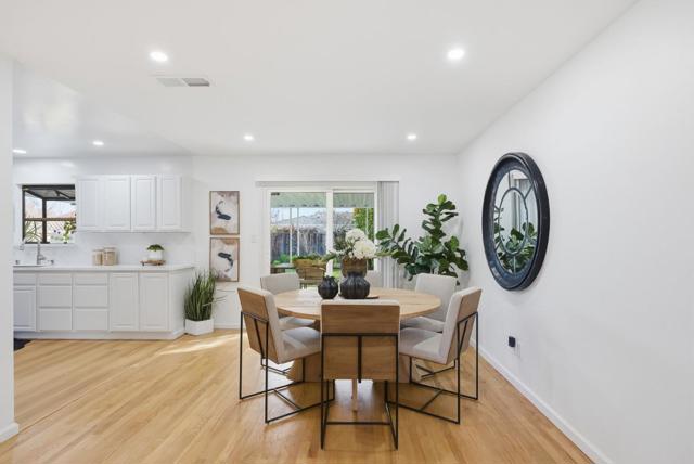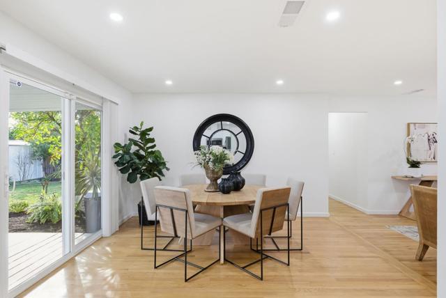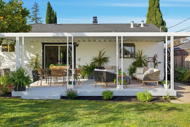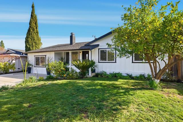 This 3-bedroom, 2-bath home offers approx. 1,087 sq. ft. of living space on a 6,060 sq. ft. lot. Welcoming front porch. Primary bedroom features a sliding door to a private deck and an updated bathroom with shower. Two additional bedrooms with built-in closets. Hall bathroom includes jet tub, sun tunnel, new floor tile, vanity, and mirror. Open living room with fireplace and access to deck and peaceful backyard. Updated kitchen with quartz countertops, stainless steel appliances, bay window, newly painted cabinets, and new sink and faucet. Recessed lighting in living room, dining area, and kitchen. Newly stained hardwood floors in living areas and bedrooms, new vinyl flooring in kitchen and bonus room, and new baseboards throughout. Fresh interior and exterior paint. Spacious yard with covered deck for indoor-outdoor living. Large lot with lawn and fruit trees including orange, lemon, pomegranate, cherry, plum, apricot, apple, and peach. Bonus room with indoor laundry. Top rated schools and centrally located close to shopping, Silicon Valley offices, and major freeways.