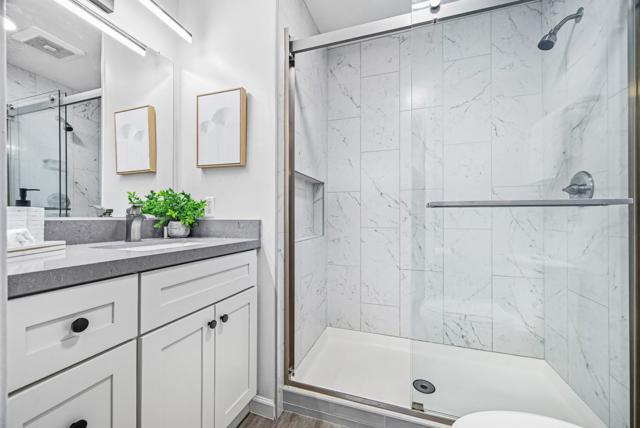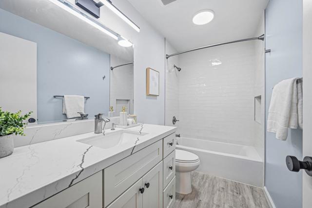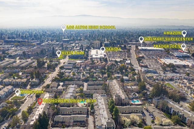 REMODELED CORNER UNIT 2-bedroom, 2-bath condo in the highly desirable Old Mill community, served by TOP-RATED LOS ALTO schools. This home features a newly upgraded open-concept kitchen with quartz countertops, custom cabinetry, and stainless steel appliance, ideal for everyday living and entertaining. The inviting living room opens to a private balcony with abundant natural light. A split-bedroom layout offers excellent privacy. The entire remodel was completed with permit, including both fully updated bathrooms. Enjoy in-unit laundry, A/C, new double-pane acoustic windows, vinyl flooring, recessed lighting, and an upgraded electrical panel. Secured building with elevator access and assigned under-building parking. Community amenities include two pools, a hot tub, updated clubhouse, and picnic areas. Exceptional location within walking distance to Whole Foods, Trader Joes, Target, 24 Hour Fitness, Caltrain (San Antonio Station), and nearby parks. Minutes to Google, Meta, Waymo, Microsoft, Amazon, Stanford University, and major Silicon Valley tech hubs. Covington Elementary, Egan Junior High, and Los Altos High (buyer to verify eligibility).