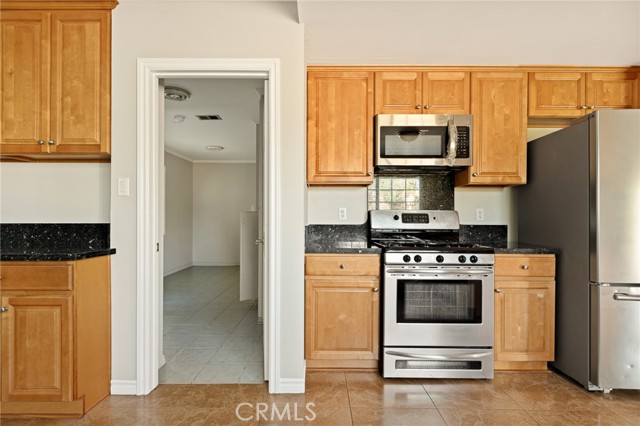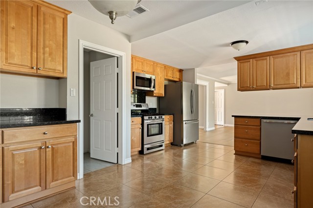 South Redlands single-story ranch home ideally located near Redlands Country Club. This 4-bedroom, 2-bath residence offers a desirable open floor plan with a welcoming living room featuring a cozy brick fireplace. The spacious family room flows seamlessly into the eat-in kitchen, complete with stainless steel appliances, granite countertops, and a breakfast counter—perfect for everyday living and entertaining. The family room overlooks the rear yard and covered patio. The primary suite includes a large walk-in shower with stone tile and an updated vanity. Three additional well-sized bedrooms and a generous hall bathroom offer a separate vanity area plus double sinks and a bathtub. Additional highlights include an oversized indoor laundry/utility room and an attached two-car garage.