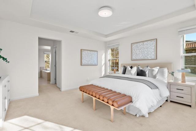 Elegant Mt. Eden single-family home offering elevated living, exceptional comfort, and convenient commute to the Peninsula, South Bay, and San Francisco. This meticulously maintained residence features 4 bedrooms, 3 full bathrooms across over 2,100 sqft of light-filled living space. The open-concept floor plan flows seamlessly to the chefs kitchen, perfect for everyday living and entertaining. A highly sought-after main-level bedroom and full bath offer ideal flexibility for a home office or multi-generational living. Upstairs, the primary suite serves as a private retreat with an ensuite bath and spacious walk-in closet. A versatile bonus loft is perfect for movie nights, a playroom, home gym, or dedicated office. Additional highlights include an upstairs laundry room, central AC and heat, water filtration system and a pristine two-car garage with extra storage. Step outside to a thoughtfully designed, low-maintenance backyard. It is adorable, functional, and ready for summer gatherings. Just a 5 minute walk to Greenwood Park and minutes from Costco, Target, Seafood City Supermarket, and Southland Mall. Convenient access to AC Transit, BART, the San Mateo Bridge, and Dumbarton Bridge makes commuting across the Bay Area quick and easy.