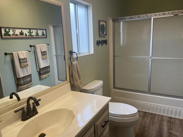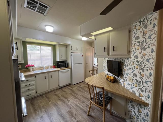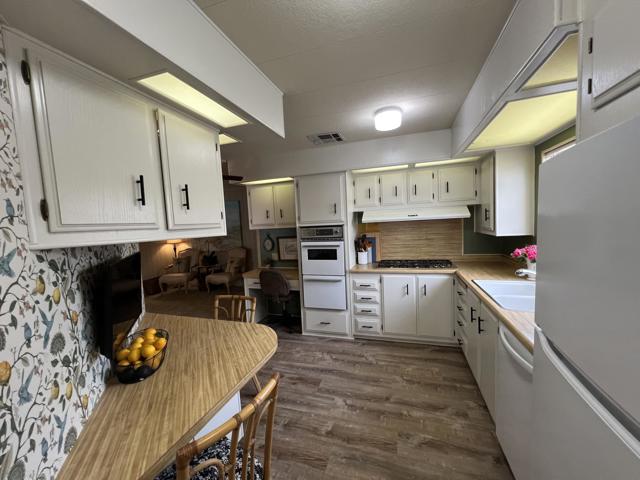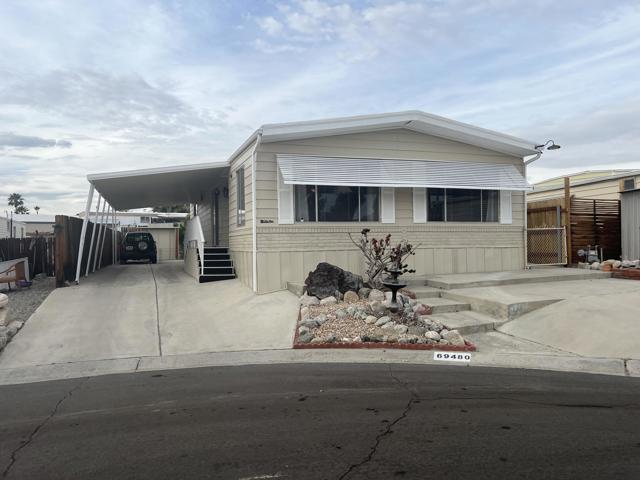 Beautifully Upgraded Home with Stunning Mountain Views!Enjoy resort-style living in this well-maintained and spacious 2-bedroom, 2-bath home with an inside laundry room, ideally situated on a quiet cul-de-sac in the highly desirable Desert Crest Country Club, a 55+ community where you OWN THE LAND -- no space rent!This inviting home features stylish laminate flooring in the kitchen, bathrooms, and laundry room, offering both durability and easy maintenance. The kitchen comes fully equipped with all appliances included, making this home truly move-in ready. A large two-car carport provides ample parking and includes a convenient storage shed for extra space.Step outside to a charming backyard with mature fruit trees, including lemon, orange, and beer lime, and take in the beautiful mountain views that surround the property.The low HOA fee of just $152 per month provides access to exceptional amenities, including:Unlimited golf on a private 9-hole par-3 courseNatural hot mineral water pool and spaClubhouse with gym, library, game room, and entertainment areaEight enclosed shuffleboard courtsA vibrant social calendar featuring bingo, aqua aerobics, line dancing, and community dinnersAdditional highlights include county-maintained roads, city water and sewer, natural gas, and cable/satellite availability, ensuring comfort and convenience.This is a fantastic opportunity to own a beautiful home in a peaceful yet active community, surrounded by breathtaking desert scenery. Don't miss it!