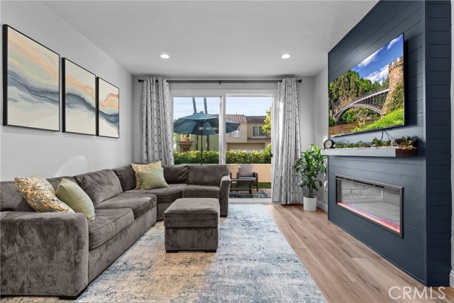 RARE!! PREMIERE LOCATION! Highly desirable END unit located in the prestigious Encore at Marina Hills. This beautiful 3 bedroom, 3 full bathroom, 2 car attached garage w/ a DRIVEWAY is what you've been looking for! Light and bright open floor plan offers TOP OF THE LINE of upgrades, upgraded flooring and paint throughout, energy efficient brand new windows, recessed lighting & custom details throughout. The stunning kitchen has newer painted cabinets, gas range, custom sink, quartz countertops and newer stainless-steel appliances. Custom eating area off of the kitchen, perfect size. The first floor, living room w/ a stunning electric fireplace, a well-designed floor plan which includes a highly prized main level full bath PLUS a bonus room perfect for an executive home office or 3rd bedroom. The living room flows perfectly into the backyard space, perfect for entertaining, enjoy California weather year round off the living and kitchen. Upstairs there are 2 bedroom suites, each with ensuite bathrooms. The primary bedroom suite offers vaulted ceilings, a private view balcony for enjoying the amazing views of the sunset year round, a walk-in closet, and a generous bathroom with dual vanities, updated countertops + more. The secondary bedroom is large in size with an ensuite bathroom. The two car garage offers plenty of storage with driveway. Encore amenities include a sparkling pool & spa, lounging & picnic areas. Community re-piped with Pex plumbing in 2018. Close to Marina Hills Park pool, clubhouse, tennis courts, playgrounds, sports fields, & courts, shopping, dining, award winning schools, hiking & biking trails, minutes from local beaches. Ready to go!! This truly is a resort living right in your own neighborhood!