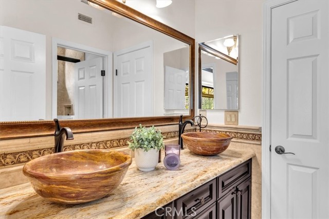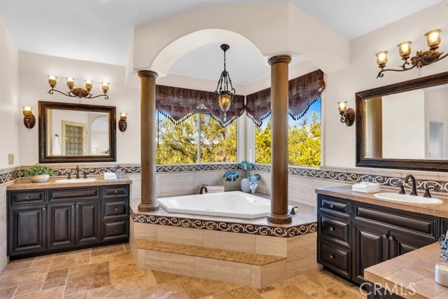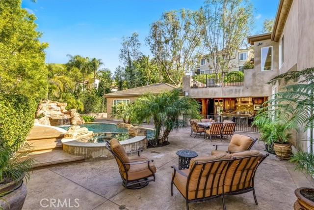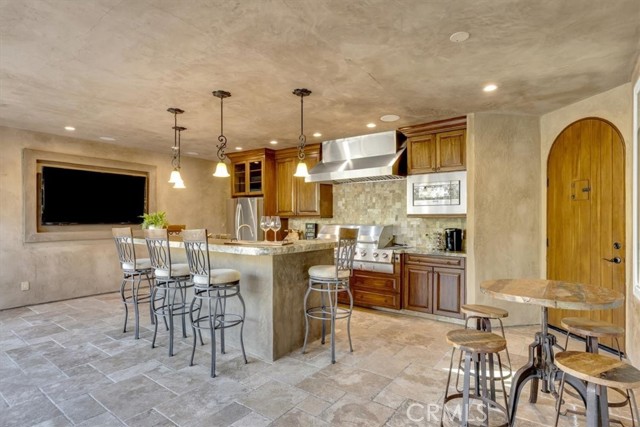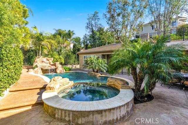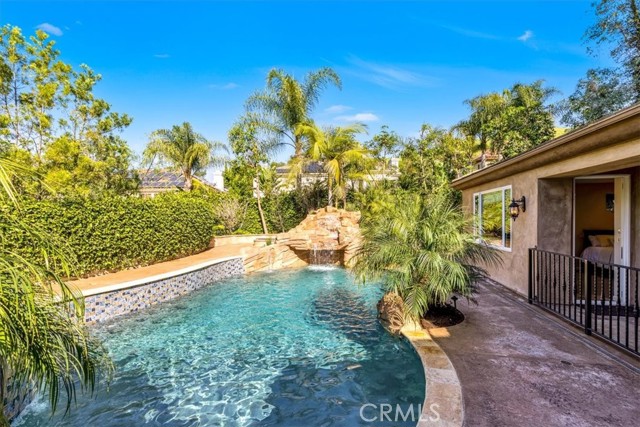 Discover unparalleled luxury living in this meticulously maintained semi-custom estate, ideally situated on a premier 22,000+ sq ft lot within the exclusive gated community of Capistrano Estates. Showcasing timeless Mediterranean architecture, this impressive 4,696 sq ft residence offers exceptional craftsmanship, thoughtful design, and effortless indoor-outdoor living. The highly sought-after floor plan features 5 bedrooms and 4 full bathrooms in the main home, including a desirable main-level bedroom and bath, plus two private ensuite casitas—ideal for guests, multigenerational living, or flexible work-from-home space. A grand foyer, soaring vaulted ceilings, formal living and dining rooms, and abundant natural light create an elegant yet welcoming ambiance throughout. The chef’s kitchen is beautifully appointed with premium stainless steel appliances, warm custom cabinetry, granite countertops, a walk-in pantry, and an oversized center island, flowing seamlessly into the home’s gathering spaces for everyday living and entertaining. Upstairs, the luxurious primary suite offers a peaceful retreat with a private walkout deck overlooking the backyard, while additional bedrooms include an ensuite and a Jack & Jill layout. Designed for entertaining, the resort-style backyard showcases a custom pool and spa with waterfalls, a fully equipped outdoor kitchen with 7-burner BBQ, refrigerator, microwave, and 65” TV, plus a 600+ bottle custom wine room. A three-car garage fully paid solar, custom built-ins, and generous storage add comfort and efficiency. Residents enjoy access to nearby walking, hiking, and equestrian trails, along with San Juan Capistrano’s historic charm, dining, and shopping. Low HOA and no Mello-Roos. A rare opportunity to own a truly exceptional home in one of the area’s most coveted communities. Welcome Home!