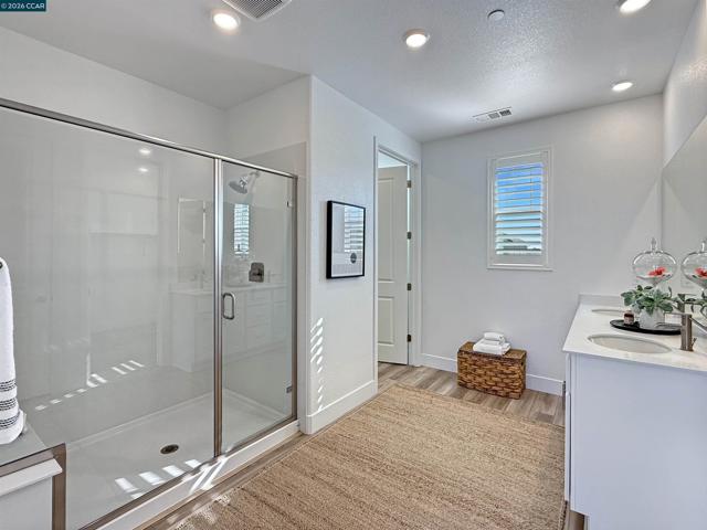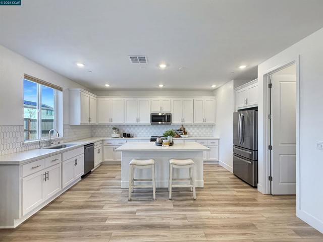 This newly built Craftsman-style home is loaded with premium upgrades, perfect for those seeking style, comfort, and energy efficiency in a move-in-ready package. Step through the covered porch into a home designed around connection. The gourmet kitchen, featuring a generous island with sleek quartz countertops, premium appliances, and walk-in pantry, opens seamlessly to the dining area and expansive great room, creating an ideal space for everyday living and entertaining. Luxury vinyl plank flooring flows throughout the home, while a convenient bedroom on the main floor offers flexibility for guests, a home office, or multi-generational living. Upstairs, the primary suite offers a personal retreat, with a spa-like bathroom featuring double sinks, an oversized shower, and a spacious walk-in closet. Two additional bedrooms flanking the flex space share a full bathroom, while the upstairs laundry is positioned exactly where you need it. Premium Upgrades Throughout: Dramatic 8-foot doors, whole-house water purifier and softener system, plantation shutters and custom window treatments, attached 2-car garage with epoxy flooring, new concrete patio in the fenced backyard, and professionally landscaped front yard. Take advantage of the opportunity to make this exquisite home yours.