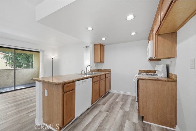 Welcome to The Woodlands, a gated community walking distance to UCR. This beautifully upgraded carriage style condominium is accessed via a private staircase & offers an end unit location with no neighbors above or below, providing a rare sense of privacy. An ideal opportunity for buyers, college students, or UCR parents looking for a convenient & well positioned home near campus. The location is a standout for those who attend or work at UCR, offering a balance of everyday convenience & classic Riverside character. Being minutes from campus allows for easy routines, short commutes & the flexibility to walk, bike, or take a quick drive to classes or work, giving residents more time to enjoy life outside of campus. A few miles from Downtown Riverside adds another layer of appeal with its historic homes, iconic architecture & cultural landmarks. The Mission Inn area serves as the heart of the city, featuring restaurants, local shops, museums, events & the popular Food Lab, creating a vibrant social & dining scene that residents can enjoy without a long commute. This blend of historic charm & modern amenities makes Riverside a unique place to call home. Nearby Canyon Crest provides shopping, dining, & everyday conveniences, making errands & casual dining simple & close to home. For outdoor enthusiasts, nearby trails & green spaces offer an easy way to unwind, exercise, or enjoy great year-round weather. Quick access to major freeways allows for smooth travel throughout Riverside & into surrounding areas, approximately 60 miles from Huntington and Newport Beach, Hollywood and Big Bear, making this location accessible to all of the best Southern California has to offer. This condo features central heat & air, luxury vinyl plank flooring throughout & plush carpet in the bedrooms, accompanied by 2 large sliding glass doors that bring in abundant natural light. 1 slider opens from the family room, while the primary bedroom slider leads to a private balcony. The main bedroom also includes a separate sink area for added convenience. The kitchen has been updated with newer cabinetry & granite countertops & the bathroom features a newer vanity cabinet & an upgraded shower enclosure. The unit is in great condition & is thoughtfully improved. Community amenities include a pool & spa, BBQ & picnic areas, community laundry room, landscape maintenance & trash. Parking is easy with 1 attached garage plus 1 additional assigned parking space, with guest parking available.