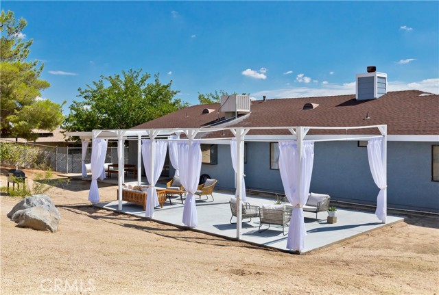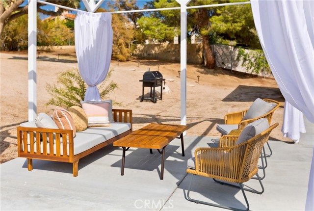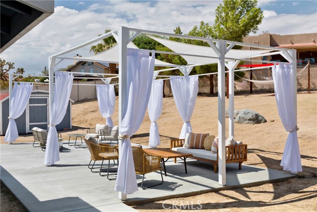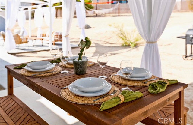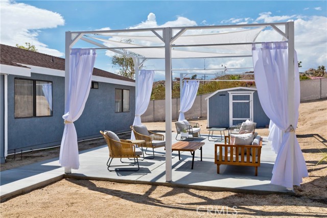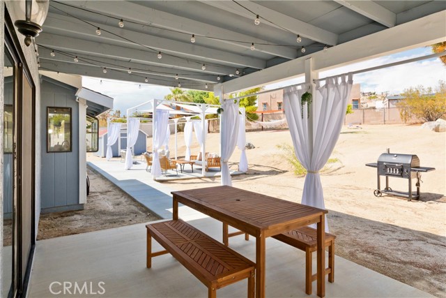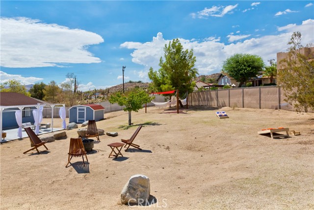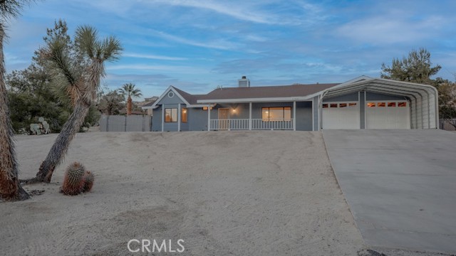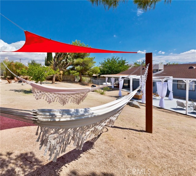Gorgeous 3 Bedroom, 2 Bathroom Home with Views in One of the Most Coveted Areas of the Hi-Desert. Located on a cul-de-sac in the highly sought-after Western Hills Estates area of Yucca Valley and renovated with beautiful finishes, this wonderful home is sure to please. As you drive through the neighborhood, you'll realize why this area is so popular, passing by well-cared-for homes surrounded by stunning views of boulders and mountains in the background. Pulling into the ½-acre lot, you’ll notice a chic blue façade with white trim, a double garage door, and mature Joshua trees. A covered patio welcomes you as you stop to admire the phenomenal views of the cityscapes along with the majestic mountains. Stepping through the front door, you’ll find a character-driven floor plan featuring a stunning hand-painted mural, stylish wood laminate flooring, a tasteful color scheme, decorative shelving accents, and a beautiful fireplace that ties it all together. Designed with entertaining in mind, the upgraded and fully equipped kitchen is spacious, inviting, and stylish. It comes equipped with quartz countertops, tasteful kitchen cabinets, and stainless steel oven and dishwasher! Just off the kitchen is the large dining room, which could easily be utilized as a den. Each guest bedroom has plenty of space, and the guest bath features wood tile flooring, a beautiful vanity, a full bathtub/shower, and a stylish mirror! Entering the large primary bedroom, you'll find a walk-in closet, a bay window, and a private bathroom featuring wood tile flooring, a chic vanity, a stylish mirror, and a full bathtub/shower! Can it get any better? Yes! The backyard has been transformed into a private sanctuary outfitted with privacy fencing, a covered patio, a NEW 20x30 cabana, and a NEW jacuzzi, making this space the perfect spot to host gatherings or enjoy all to yourself! Additional features include an upgraded electrical panel to 200A, a new 4-ton electric HVAC system, dual-pane windows, and more! Call today before this one is gone!
