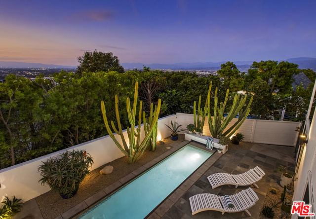 Set on a quiet cul-de-sac in the Studio City hills, this 1961 midcentury post-and-beam residence with jetliner views, is one of only five homes built for a USC Case Study project by Chapman and McCorkell, blending architectural significance with a sensitive, modern restoration. Inside, beautifully preserved maple hardwood floors, original lighting fixtures, a striking two-sided fireplace, and dramatic two-story picture windows flood the home with natural light, seamlessly blending classic midcentury character with contemporary comfort. The fully renovated, open-concept kitchen pairs fireclay tile and Bosch appliances with a striking waterfall island and abundant storage, opening gracefully to the dining and living spaces. The main floor is further enhanced by a bonus office, a thoughtfully designed pantry/mudroom, and exceptional storage. Upstairs, three generously sized bedrooms are awash in sunlight with panoramic views, including a serene primary suite with an enormous custom closet and direct access to an expansive deck with 180 degree views of the San Fernando Valley. The architecture of this home opens effortlessly to inspired outdoor living, with generous spaces for entertaining, an in-ground heated lap pool equipped with a resistance swim jet, and newly installed drought-tolerant landscaping designed for beauty and sustainability. The home has been thoughtfully updated with a newer roof, electrical panel, HVAC system, extensive whole-home solar system, and EV charging. It is also wildfire certified by the Insurance Institute for Business & Home Safety (IBHS), following extensive mitigation completed by Madronus Wildfire Defense. Zoned for award-winning schools, this property is also minutes from the Studio City Farmers Market, Fryman Canyon hiking trails, and the vibrant shops and restaurants along Ventura Blvd. and Ventura Place. Don't miss this chance to own a beautifully restored midcentury gem, where iconic design meets modern living, set against one of Studio City's most stunning backdrops.
