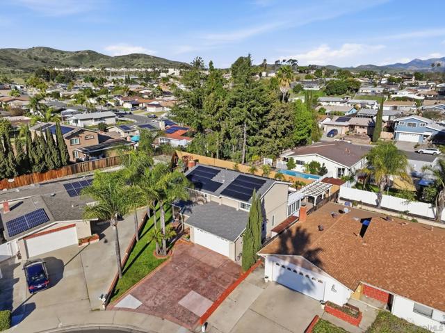 Resort-style living takes center stage in this thoughtfully updated Santee home, where an owned solar system and private pool create a comfortable, energy-conscious lifestyle from day one. Tucked away on a quiet cul-de-sac, this 4-bedroom plus bonus room, 2.5-bath residence offers 2,110 square feet of well-designed living space on a 7,528 square foot lot. Inside, the layout includes well-defined living areas with distinct spaces for living, dining, and gathering. Dual-pane windows and a freshly painted interior enhance natural light and comfort throughout. The updated kitchen serves as a functional hub with granite countertops and stainless steel appliances, connecting easily to the main living spaces for effortless flow. A bonus sunroom provides flexible use as a home office, playroom, or relaxation space, adding valuable versatility. Outside, the entertainer’s backyard is designed for year-round enjoyment with a solar-heated pool, expansive covered patio, outdoor kitchen, grassy area, and play set, offering space to relax or host with ease. Major system updates include owned solar, a new roof, HVAC system, and solar pool water heating installed in 2022, along with a new water heater added in 2024, offering improved efficiency and added peace of mind. Conveniently located close to schools and everyday amenities, this move-in ready home delivers the indoor-outdoor lifestyle Santee is known for—schedule your private showing to experience it firsthand.