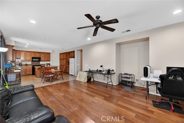 Welcome home to this expansive two-story residence located in the growing community of San Jacinto. Offering 7 bedrooms, 3 bathrooms, and 3,391 sq ft of living space on an 8,712 sq ft lot, this versatile property also features solar for energy efficiency and a layout that allows for multiple living options. Upon entry, the foyer welcomes you with a staircase leading to the second floor. To the right, a spacious bonus room offers the perfect opportunity to create a private living area, home office, or separate section of the home. Across the hallway, the bright kitchen flows into the dining area and living room, creating an open-concept space ideal for gatherings. A sliding glass door leads to the covered rear porch and spacious backyard. The main level includes a bedroom, full bathroom, and a separate indoor laundry room—providing flexibility for extended family or a private living setup. Upstairs, the primary suite features its own bathroom and closet, while three bedrooms across the hallway share a full bathroom. Two additional bedrooms are located on the opposite side of the hall, each with its own closet. This thoughtfully designed floor plan allows you to live comfortably in one section of the home while renting out the rest, or easily convert the space back into a large single-family residence to suit your needs. With a covered rear porch, ample backyard space, and close proximity to local amenities, this home offers both lifestyle flexibility and long-term potential. Don’t miss this unique opportunity—schedule your private tour today!