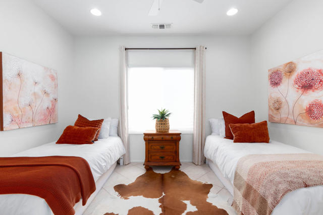 Immaculate and spotless Turnkey Elegantly Firnished, plus, Home for Sale in Sun City Palm Desert . Pasadena Model. This home is where the proverb ''GOOD THINGS COME in SMALL PACKAGES '' fits to a T. The home features a Great Room with an 85 inch TV, a Master Bedroom with Ensuite and a Custom Walk-in Closet , Den used as guest bedroom and has a beautiful Barn Door. The house has Newer Windows, Tile Flooring throughout , furniture is less than 2 years old, and only used seasonally. Kitchen has a new gas range. For laundry, a new dryer... ALSO included are TWO Electric Bikes , and a Golf Cart with New Seats, Batteries and more. A list of all furnishings, upgrades and more is available. A relaxing south facing Backyard with a covered patio a raised garden area and finished floor to enjoy the Desert mild winters. Low maintenance landscaping, 2 Car Garage Finished with Epoxy Floors. This home is ideal for a retiree interested in Sun City Palm Desert or looking to downsize. Gated with 24 hr. Security Guard. Just bring your toothbrush and suitcase and enjoy life . Please make sure to check the PHOTOS of this immaculate home. If you are a golfer, Sun City has 2 golf course, sports courts, indoor and outdoor pools and spas, and much much more to list. HOA Fee Includes Cable, Internet,Pest Control , and the area Pool & Barbecue. You do not want to miss this one!