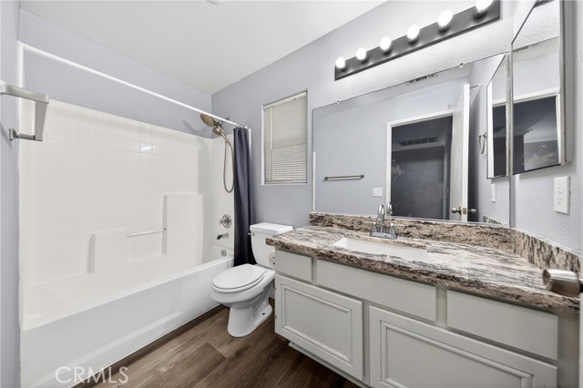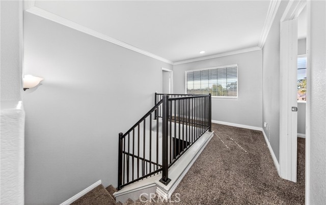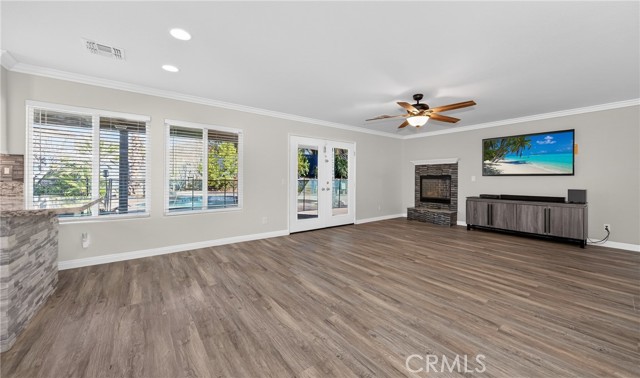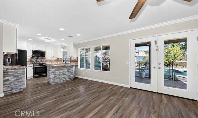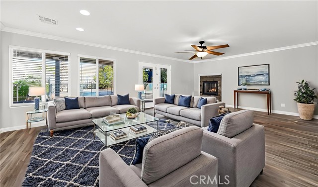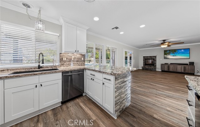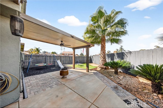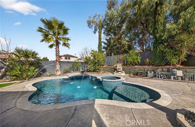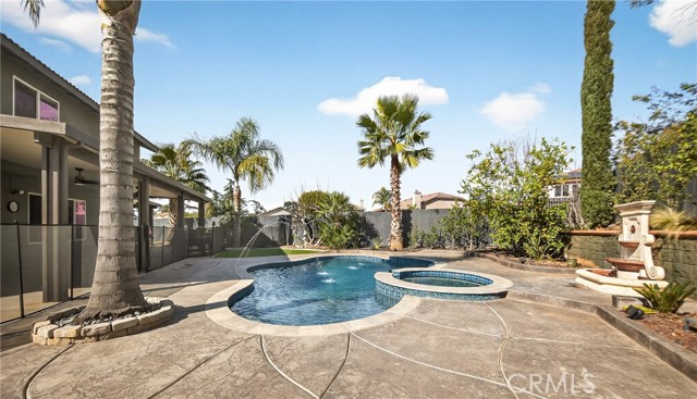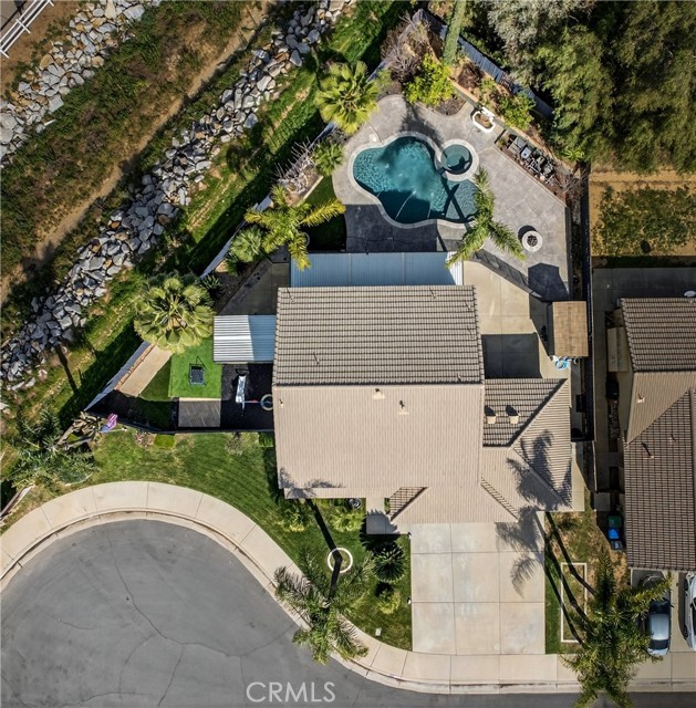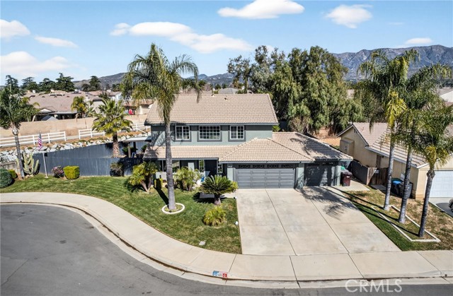 This home is waiting for ready to move in. Seller put a lot in to this one from the Gorgeous @ 3 year old Heated Pool and Spa with Pebble tech and crushed pearl, security fenced pool. Recently Remodeled Kitchen and bathrooms. Updated appliances in Kitchen which all stay, washer and dryer to remain as well. New exterior paint, 2 covered patios, one on side is set up with gas and electric for an outdoor kitchen. Three car garage with one door drive thru to rear yard and a tesla charger installed. Laminate flooring, recessed lighting, crown molding and base moldings. Lots of driveway parking besides the garage and located at the end of a large cul de sac. Ring security and smart thermostat. Very near shopping. No HOA and only one small CFD bond. The downstairs room could be turned back into a 5th bedroom with a little work, there is a 3/4 bath downstairs and a pantry off Kitchen. Tile roof, a storage shed and so much more. See it today.