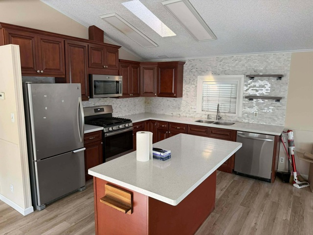 Description: 3-bedroom, 2-bath home located in Casa Del Lago park in San Jose. This home features an open-concept kitchen that connects directly to a spacious living area, offering a functional and practical layout. The kitchen provides ample cabinet storage, counter space, and an island for additional workspace. The living room allows flexibility for various furniture arrangements and everyday use. The primary bedroom includes a private bathroom, with two additional bedrooms and a second full bathroom located nearby. A small backyard area offers space for outdoor seating or light gardening. Conveniently located near Great Mall, Costco Wholesale, and just minutes from San Jose International Airport. Easy access to major freeways, including Interstate 880, Interstate 680, and U.S. Route 101. Fireplaces: NO