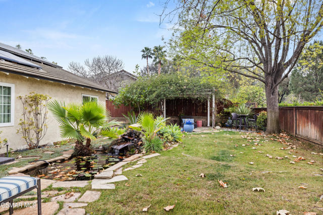 Welcome home to this wonderful single-story beauty on a quiet street in the heart of Newbury Park. With 3 bedrooms, 2 bathrooms and 1324 interior square feet - this home is perfect for any buyer. Spacious living room, family room with cozy fireplace and updated kitchen with newer cabinets and granite counters. Primary bedroom with en suite bathroom and tiled shower. Two secondary bedrooms with hall bathroom and shower tub. Peaceful backyard with flagstone accents, gas firepit, sparkling fishpond and plenty of privacy. Garage comes with a plethora of storage, high voltage outlet and additional attic pull down storage. Other amenities include solar panels, EV charger, ceiling fans, recessed lights and engineered wood throughout. Close to schools, parks, hiking trails and shopping. Come and see this home today!