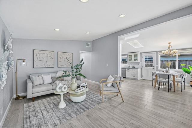 Nestled in the highly desirable Lakewood neighborhood of Sunnyvale, this stunning 3-bedroom, 2-bath modern home blends timeless design with modern comfort and innovation. The front door opens to soaring vaulted ceilings with recessed lighting, expansive picture windows, and sleek wood flooring throughout. A spacious, light-filled kitchen flows seamlessly into the open living and dining areas, creating a central hub that connects effortlessly to the backyard, perfect for everyday living and entertaining. The home features three well-appointed bedrooms and two full bathrooms, including a modern primary suite with a walk-in closet and ample storage. Comfort and style come together at every turn, complemented by central heating and air conditioning. a detached two-car garage. It offers central air conditioning and heating, along with a spacious backyard full of potential for outdoor living and future enhancements. With unbeatable access to top Silicon Valley tech hubs and major commuter routes, this home delivers the ultimate Silicon Valley lifestyle.