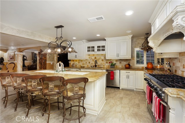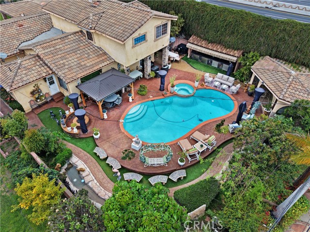 Located in the highly desirable North Downey neighborhood, this spacious 5 bedroom, 4 bathroom home blends elegance, comfort, and modern design. The home has impressive curb appeal with a stamped concrete driveway, stucco exterior with stone accents, a sharp tile roof, and a double wrought iron front door. The formal living room with fireplace and formal dining room create the perfect setting for entertaining or large family gatherings, while the family room features a built-in wet bar for relaxing in the evening. The remodeled chef’s kitchen showcases a large center island, premium appliances, high-end cabinetry, and abundant counter space. Top-of-the-line hardwood floors, coved ceilings, and architectural columns enhance the living areas with timeless character and modern sophistication. Upstairs, the expansive primary suite offers a private retreat with a jetted soaking tub, oversized tile shower, and dual walk-in closets. The backyard is truly an entertainer’s dream, complete with a resort-style pool and spa, fire pit, tranquil stream, gazebo, and lush landscaping with privacy trees. An impressive outdoor kitchen includes dual barbecue grills, commercial-grade hood, sink, and bar — ideal for hosting year-round. A rare opportunity to own a beautifully upgraded home on a large lot. This property is located close to the local elementary and middle school, has easy freeway access, and minutes from local restaurants and shopping.