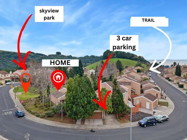 Have you seen a RARE 2-bedroom, 2-bath detached SINGLE FAMILY CORNER HOUSE with a 3 car parking that is situated next to the Skyview Park in the hills of Hayward? Why buy a condo with high hoa, when you can own a ONE STORY single-family house in one of the SAFEST PART of HAYWARD with NO neighbors to the right, top or below you . Welcome to 2757 Gamble Ct, where you truly feel like home, while being surrounded with nature, trails, park, and just minutes away from CSU East Bay, restaurants and Freeways. A fully MOVE IN READY residence spanning 1,352 sq ft, has a well-equipped kitchen featuring sleek quartz countertops, an electric oven range, refrigerator, and a new stainless steel wide sink. Additionally, this home has New floors, new paint , newly updated bathrooms and an unparalleled view of the park + A PRIVATE DIRECT ACCESS TO THE PARK from your backyard ! The high ceilings will give you plenty of natural light and air. You have to see it to believe it. A detached 2 car garage provides you added security and an additional carport gives you ample of parking for 3 cars ! Don't miss your chance to own a RARE 2 BEDROOM 2 BATH SINGLE FAMILY HOME.! This is a not just a must see but it's a must have !