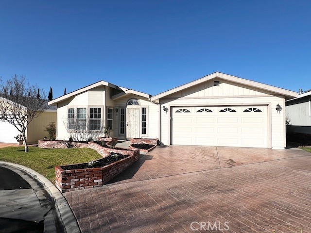 Move in ready!!! In Highland's premier 55+ senior community. This 1999 Hallmark Winchester IV home, with approx. 1440 SF, features 2 bedrooms plus bonus den, 2 bath, with attached 2 car garage and bonus project room. This home features a brand-new roof and is tucked away on an inside corner, near the fully paved walking trail with stream, offering a bit of nature with the convenience of all the park’s amenities. This home features stamped concrete and brick planters up to the porch. Features include new carpeting, new interior paint, dual pane windows, ceiling fans and vaulted ceilings throughout. The light filled kitchen has durable Formica counters, solid wood cabinets, ample storage and an eat-in breakfast nook bay-window. Living and dining rooms open to each other in an open floor plan perfect for entertaining. The den features a pony wall keeping it separate from the rest of the living area with a slider leading to the patio and private back yard with a blank canvas ready for your green thumb. The spacious primary bedroom has a walk-in closet and a generously sized ensuite bath with a walk-in shower. The guest room, bath and dedicated laundry room complete this home. Call or come in to schedule a showing!