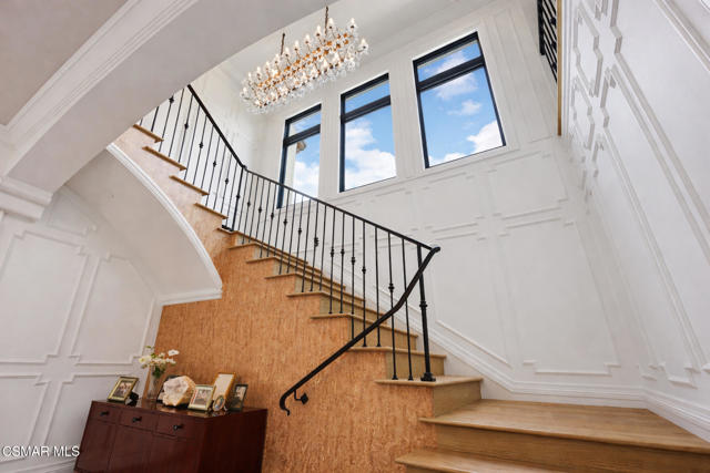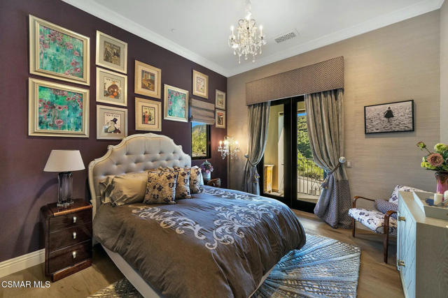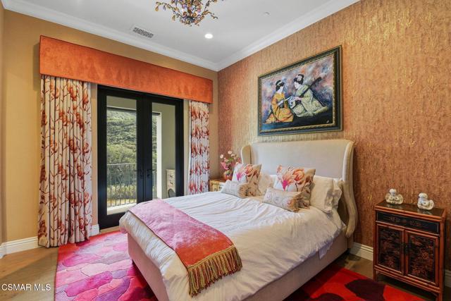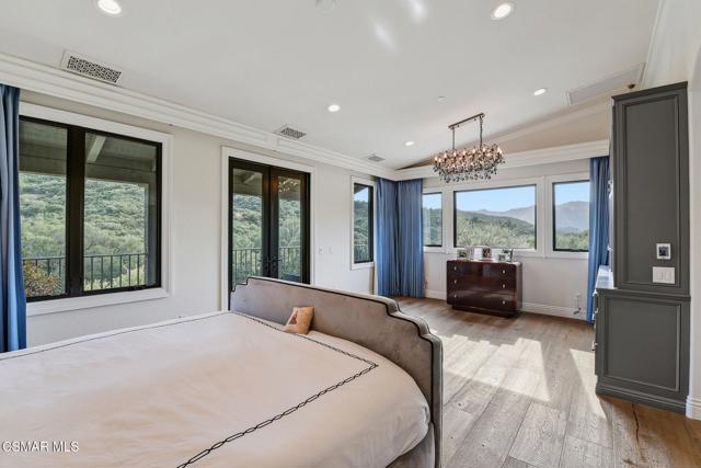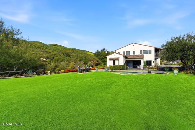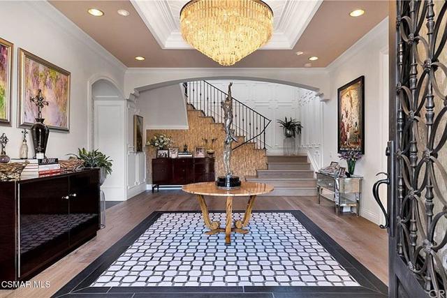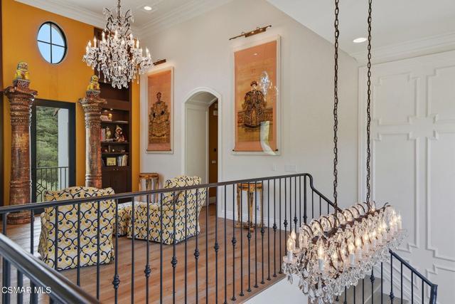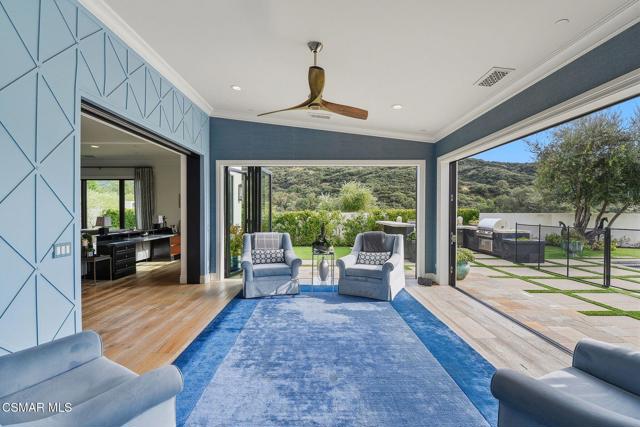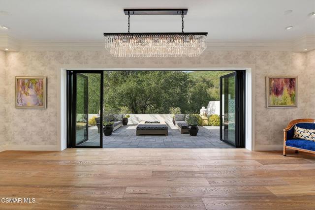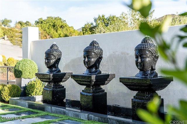 Within the ultra-private, guard-gated enclave of Country Ridge--comprised of only seven distinguished estates--this exceptional residence offers a rare blend of discretion, design, and natural beauty. Set on 8.74 acres of scenic mountainside terrain, the property provides a meaningful sense of space and separation while remaining thoughtfully integrated into its surroundings. Ideally located just moments from the 101 freeway for effortless access, yet tucked quietly behind two separate gates--including its own private entry--the estate delivers the level of privacy sought by those who value true retreat.Resting against the foothills of the Santa Monica Mountains, the home enjoys a dramatic natural backdrop, where rolling landscape and canyon views create a feeling of calm and permanence. The setting offers the beauty and serenity of mountain living while remaining close to the refined dining, boutiques, and conveniences of Calabasas, as well as the coastline of Malibu.Designed as a sanctuary, the estate was conceived to foster tranquility and elevated daily living. The grounds unfold organically around the residence, with serene Zen gardens, curated outdoor spaces, and peaceful pathways that complement the natural topography. Rather than overwhelming, the acreage enhances privacy and frames the home in a way that feels intentional and harmonious.Inside, the interiors--masterfully curated by a renowned celebrity designer--reflect a sophisticated yet livable old hollywood aesthetic. Rich textures, custom finishes, and architectural detailing create warmth and refinement throughout. Every material selection and design element was deliberately chosen; nothing was overlooked in achieving a cohesive and elevated result. The main living areas balance scale with intimacy, anchored by a striking fireplace feature and enhanced by custom ceiling treatments and millwork. Formal entertaining spaces transition effortlessly into relaxed gathering areas, all opening to terraces that capture expansive views and invite seamless indoor-outdoor living.At the heart of the home, the chef's kitchen combines beauty with performance. Appointed with premium Wolf, Sub-Zero, and ASKO appliances, and supported by a full catering kitchen and butler's pantry, it is designed to accommodate both refined entertaining and everyday ease. Adjacent living spaces extend naturally to the outdoor areas, reinforcing the relaxed sophistication of the estate.Upstairs, five ensuite bedrooms offer comfort and privacy, along with a library and additional lounge space. The primary suite is a peaceful retreat, featuring a private balcony overlooking the surrounding hills and a spa-inspired bath with soaking tub, steam shower, and curated stone finishes.Outdoors, a resort-style pool anchors the experience, accompanied by a built-in BBQ pavilion, manicured turf, and multiple seating areas positioned to embrace the mountain backdrop. The setting feels secluded and grounded--an environment that offers both openness and protection.This is not simply a residence--it is a mountainside sanctuary where architecture and landscape exist in quiet balance. A private, gated retreat designed for those who seek refined living, natural beauty, and uncompromising discretion.